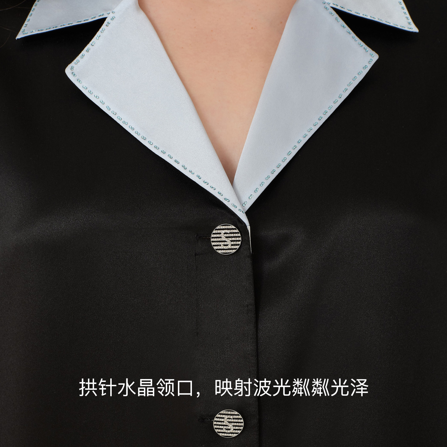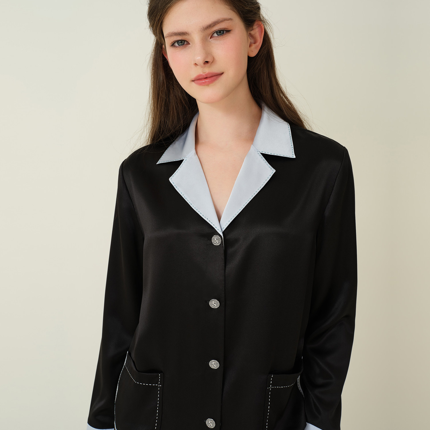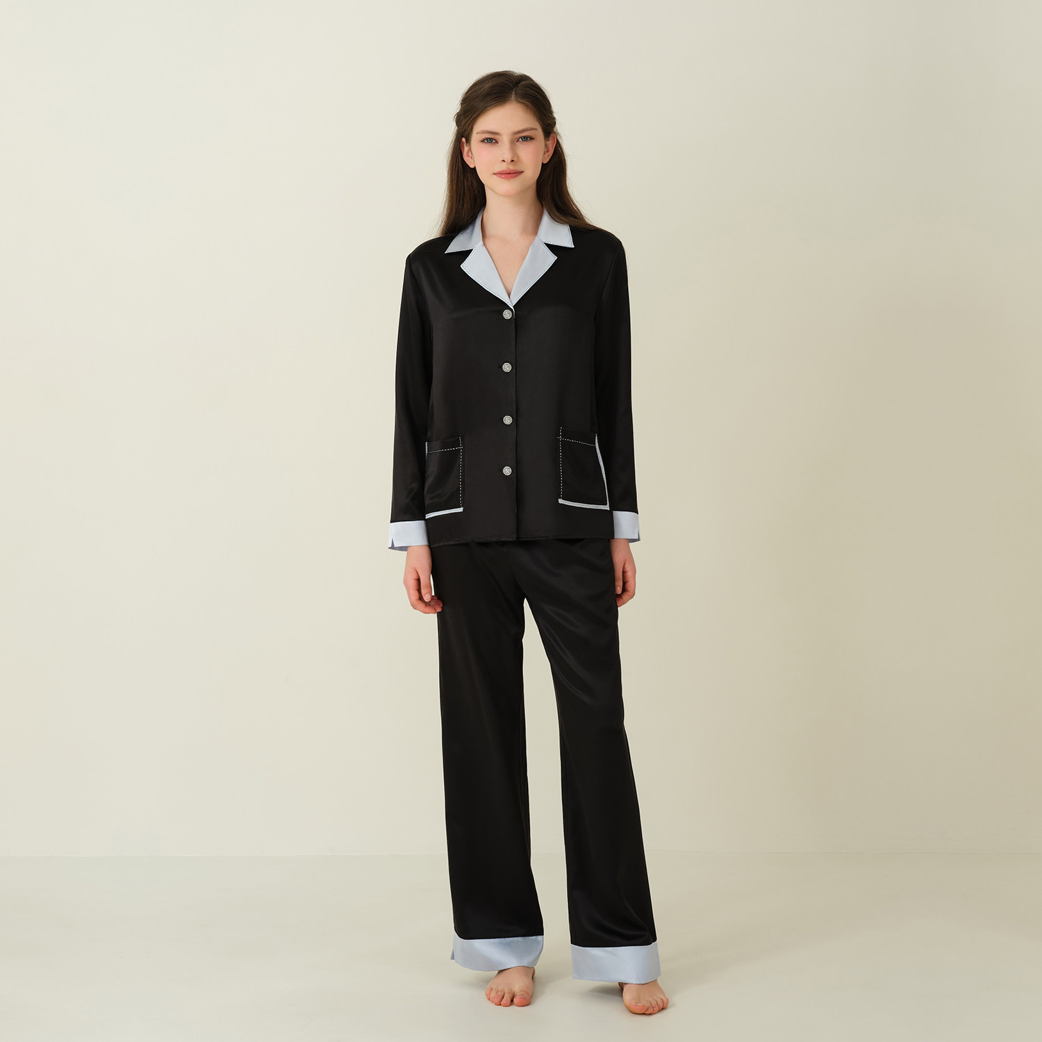 SILKY MIRACLE真丝睡衣新款ELEGANCE水晶边拼色桑蚕丝长袖家居服