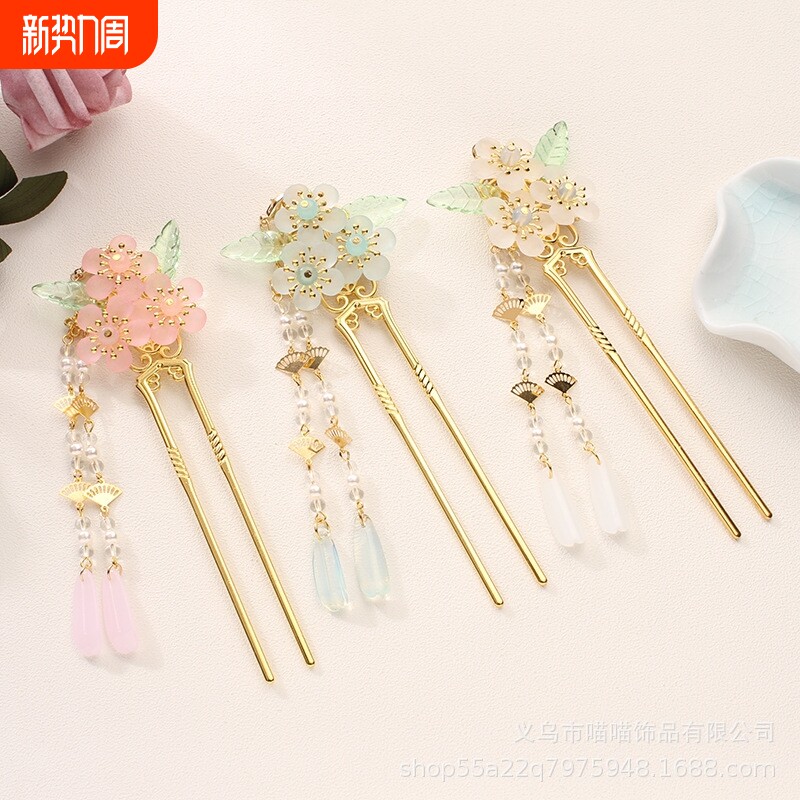 儿童发簪古风盘发儿童汉服女童古装超仙流苏步摇头饰发钗头饰簪子