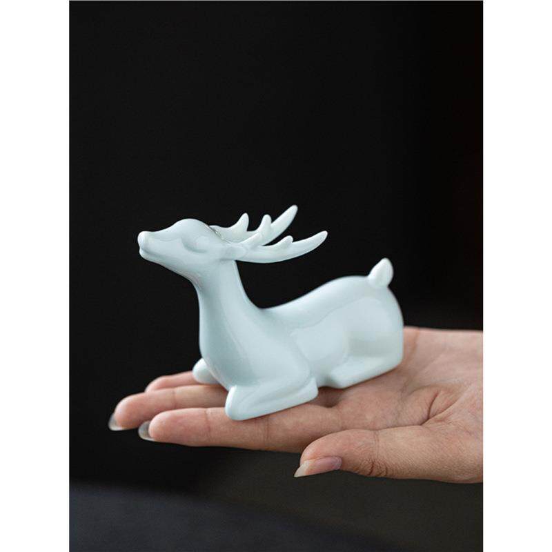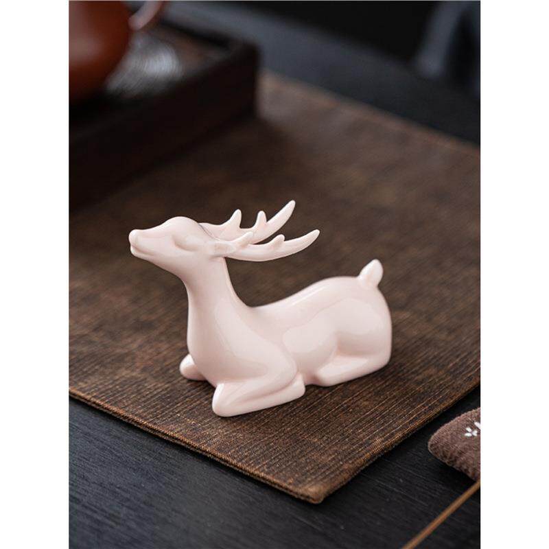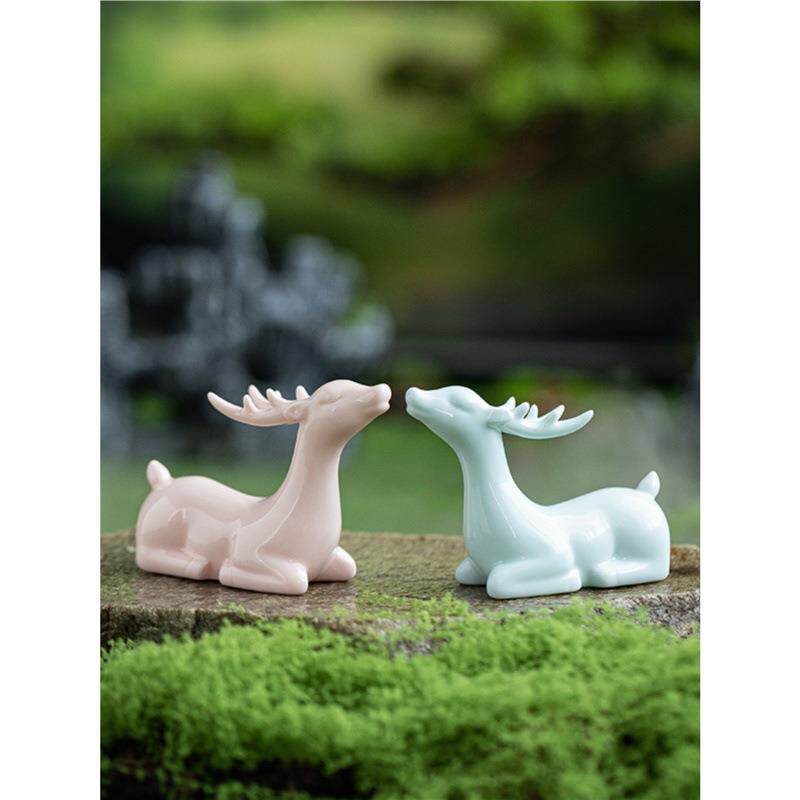创意茶宠摆件精品可养陶瓷小鹿茶盘桌面微景观茶空间装饰茶具配件