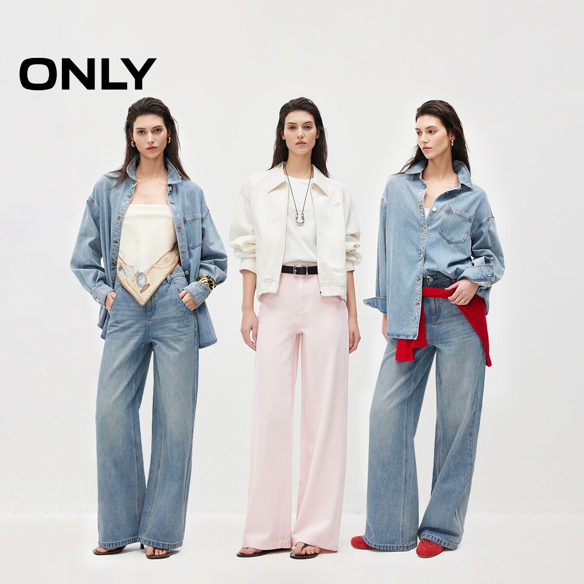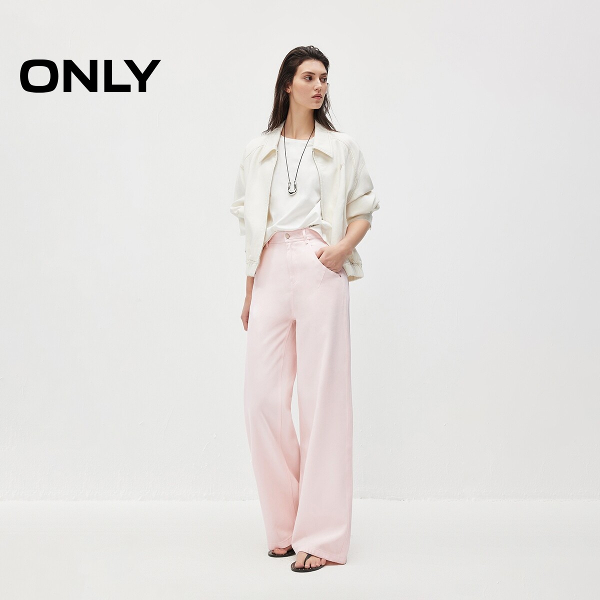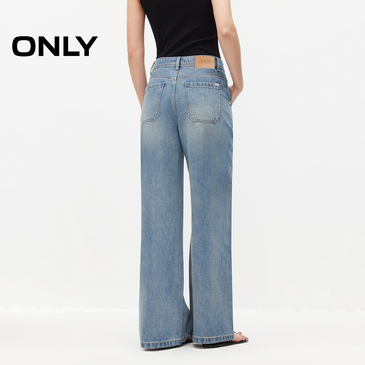 ONLY2026春季新款含莱赛尔轻盈舒适亲肤口袋高腰宽松直筒牛仔裤女