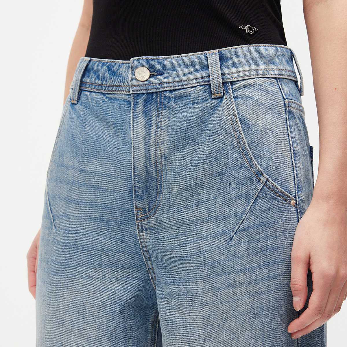 高腰款式直筒裤,定制logo皮牌