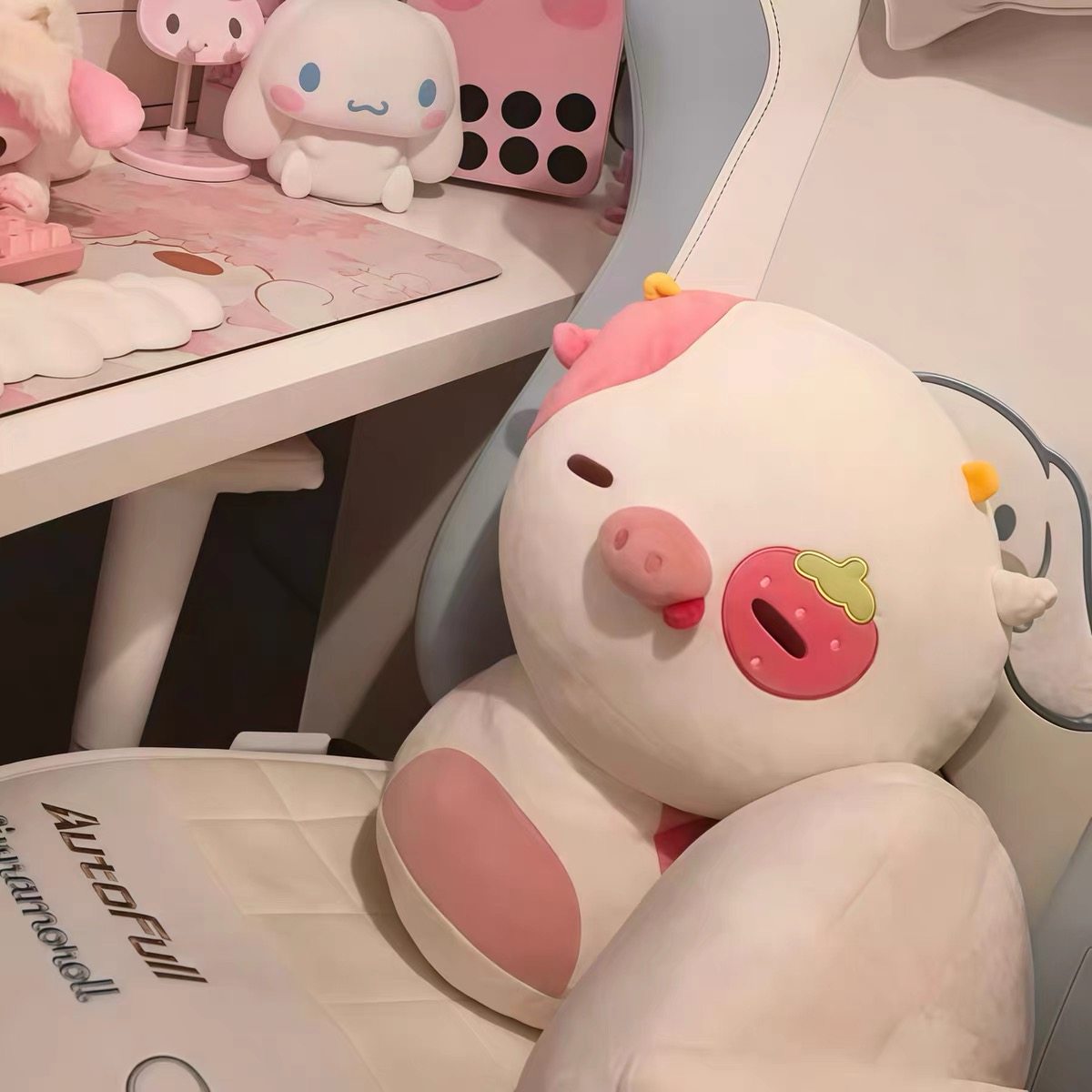 草莓奶牛猪玩偶蘑菇猪娃娃睡觉抱枕毛绒玩具闺蜜生日礼物女送女友