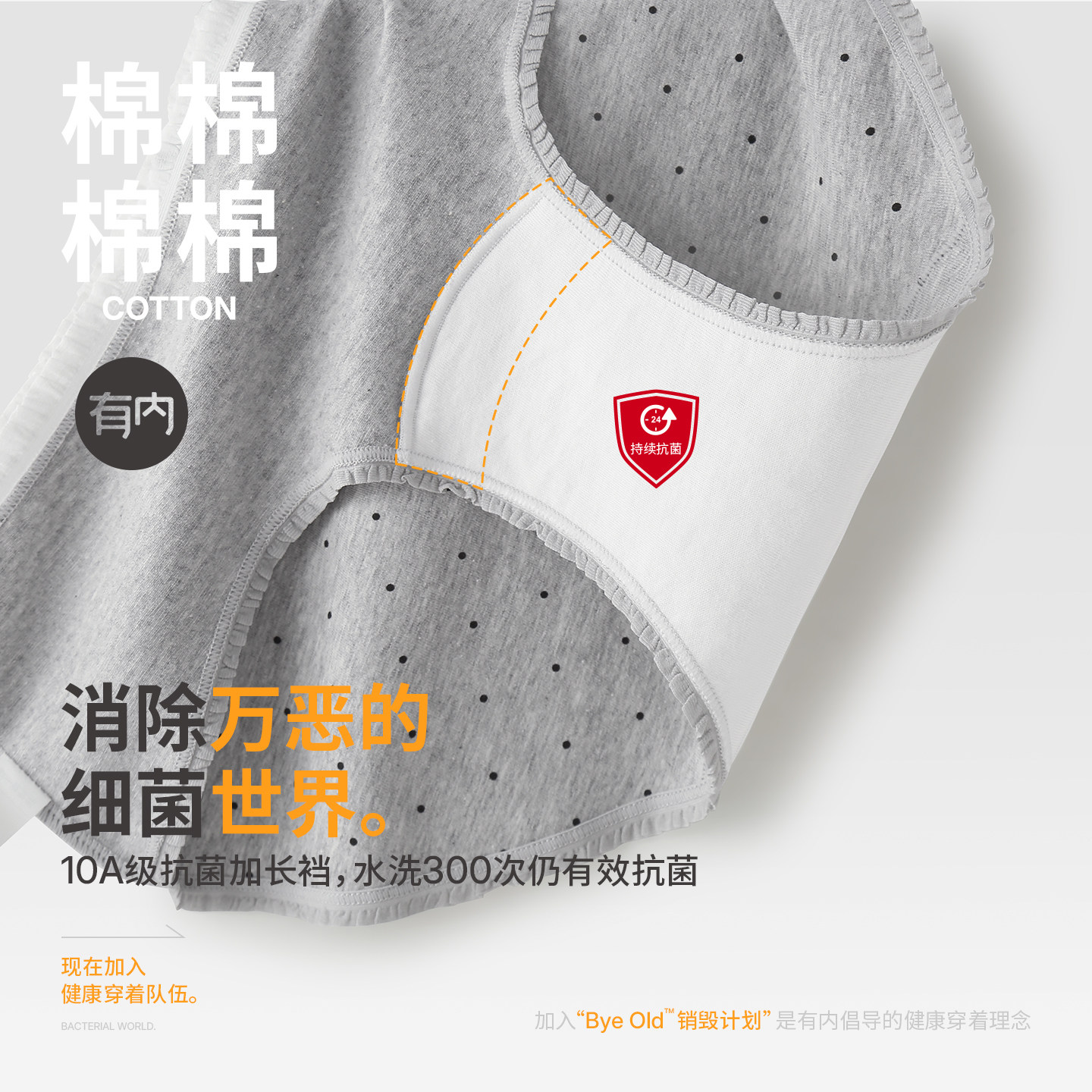 黛尔佳人无菌内裤女士2026新款纯棉抗菌全棉加长裆无痕少女三角裤