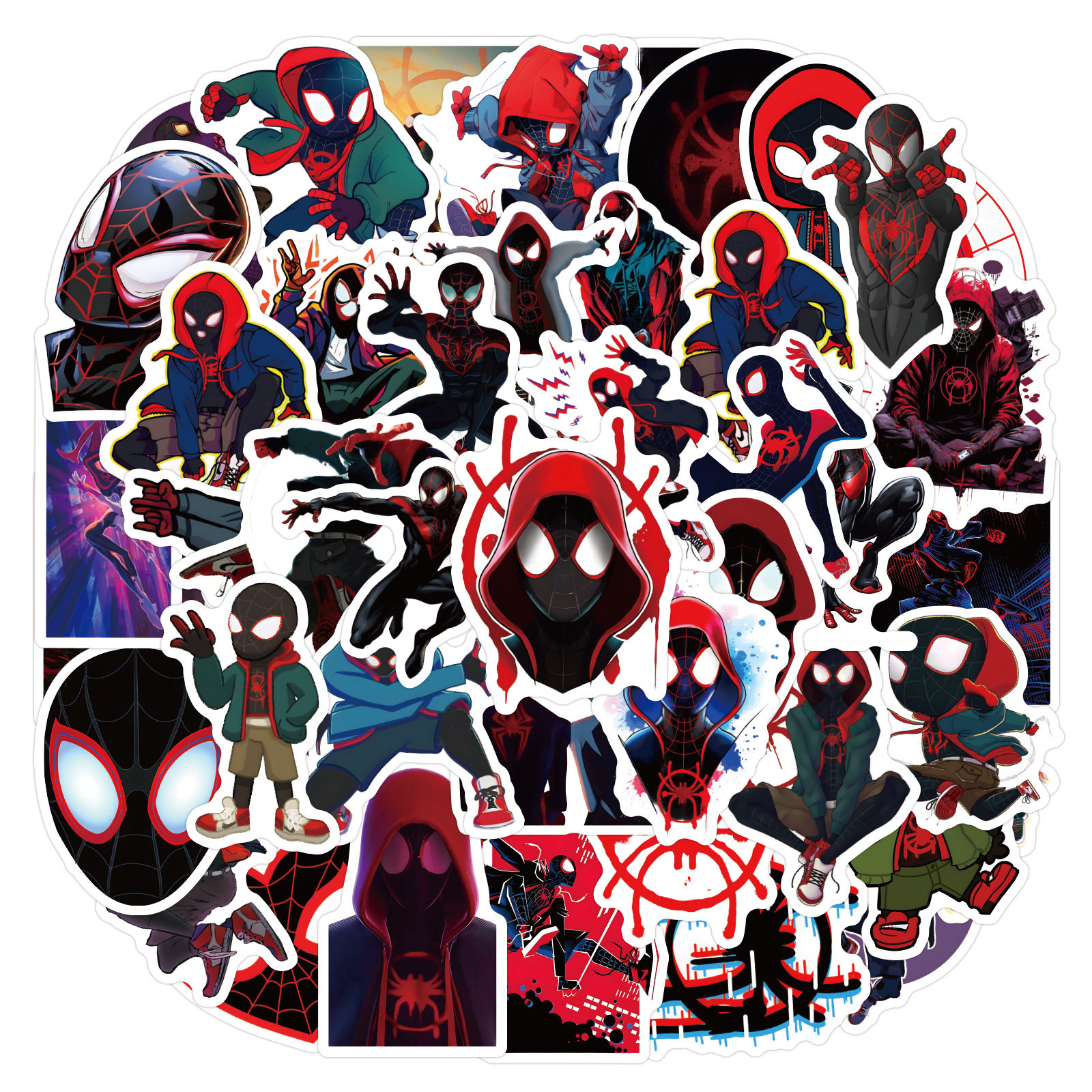 50张卡通迈尔斯蜘蛛侠贴纸可爱装饰笔记本手机壳水杯电脑防水贴画