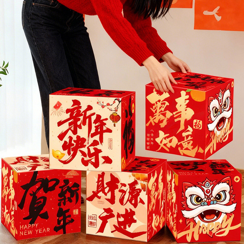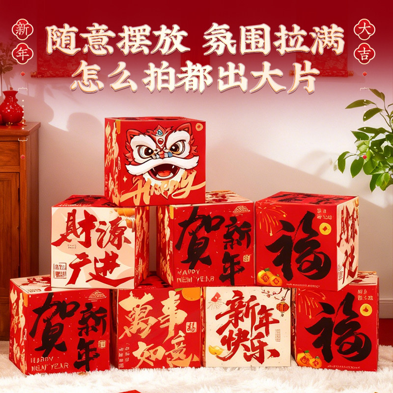 新年装饰盒子摆件2026年马年春节过年装饰品元旦商场年会场景布置