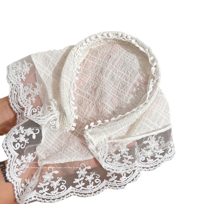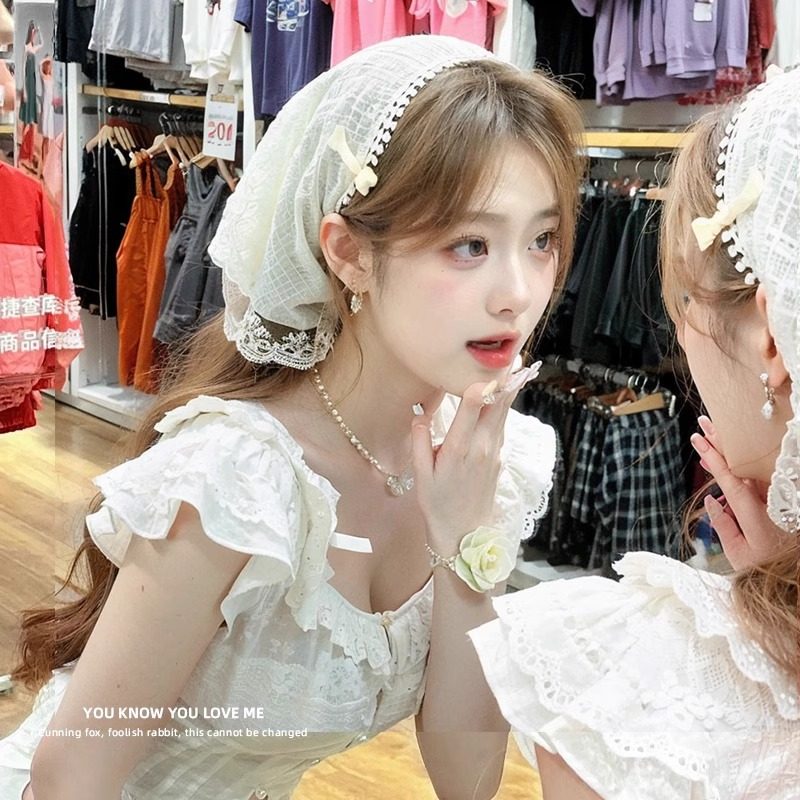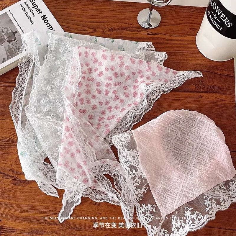 周也同款小头巾春夏季法式蕾丝绑带三角巾田园风甜美头饰丝巾
