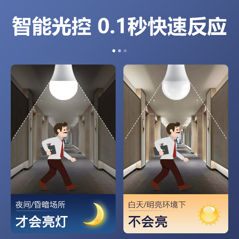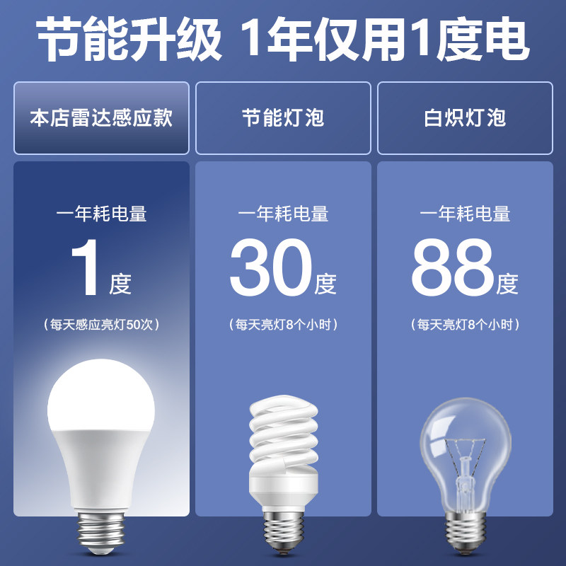 雷达感应灯泡楼道家用走廊声控灯led人体智能一体E27节能感应灯泡