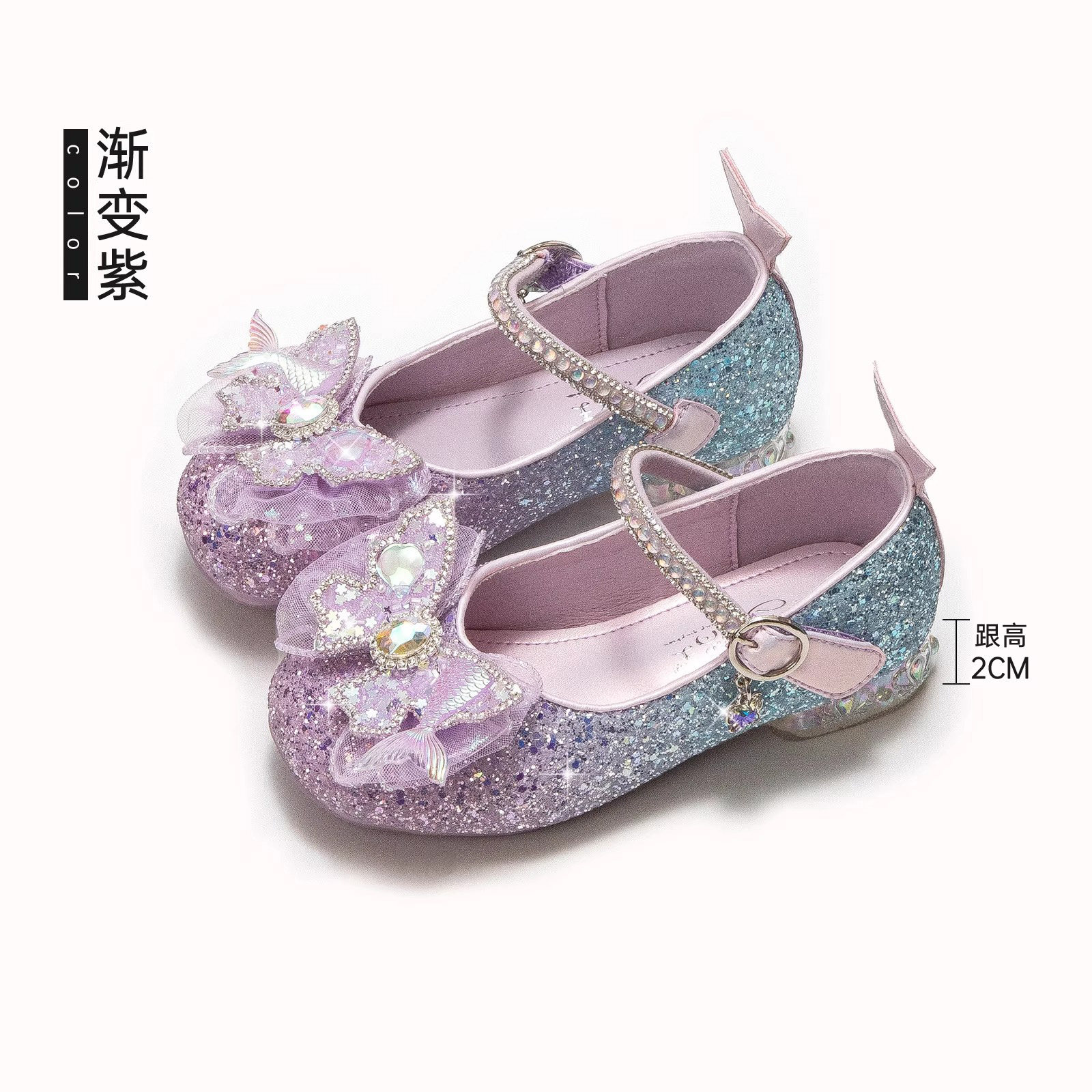 女童高跟鞋2025春秋新款皮鞋儿童水晶鞋多巴胺公主鞋闪闪鞋软底