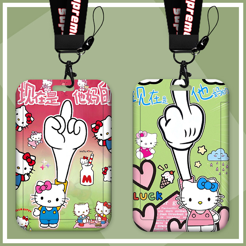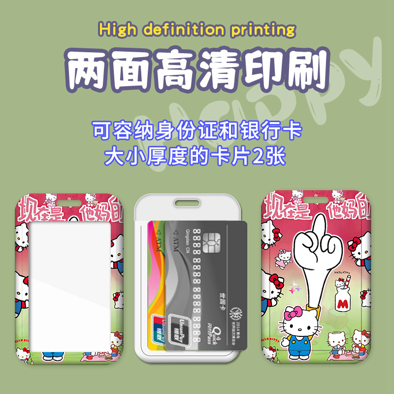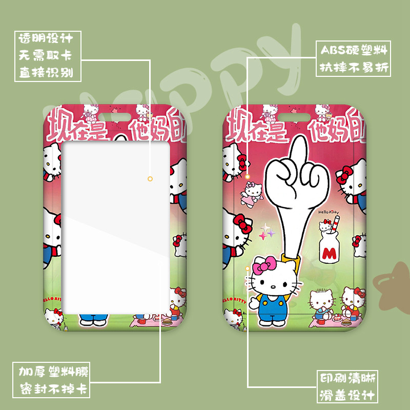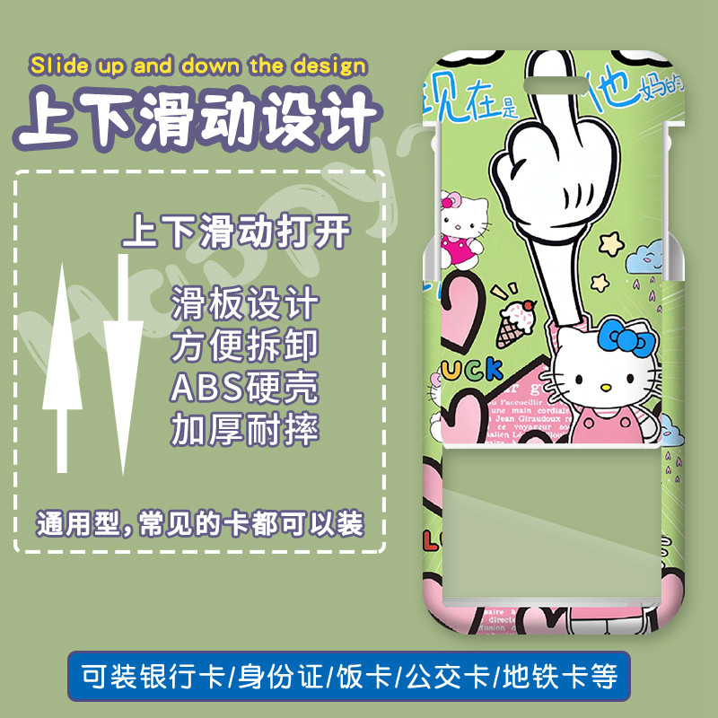 HelloKitty公交卡滑盖卡套饭卡学生身份证件保护套门禁校园卡收纳防丢透明弹簧地铁卡