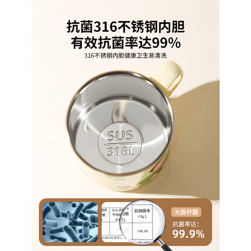 316不锈钢杯子食品级儿童水杯家用带盖刻度喝水牛奶杯宝宝用咖啡
