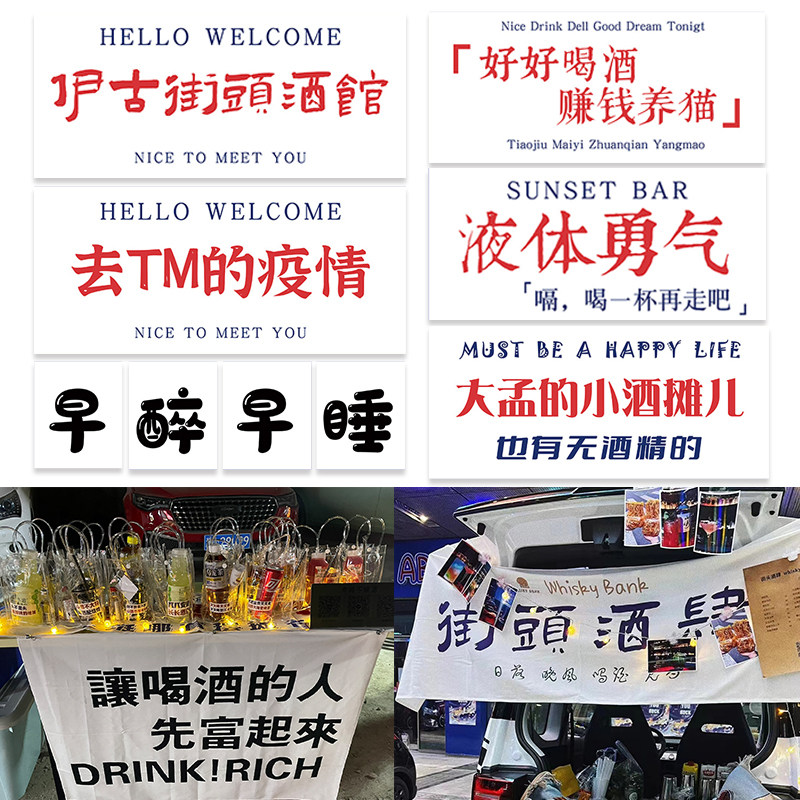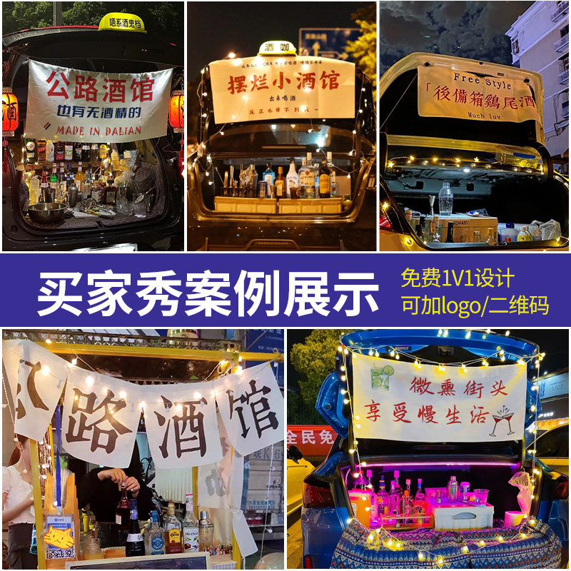 公路酒馆挂布定制后备箱鸡尾酒标语小条幅街边移动便利店广告招牌