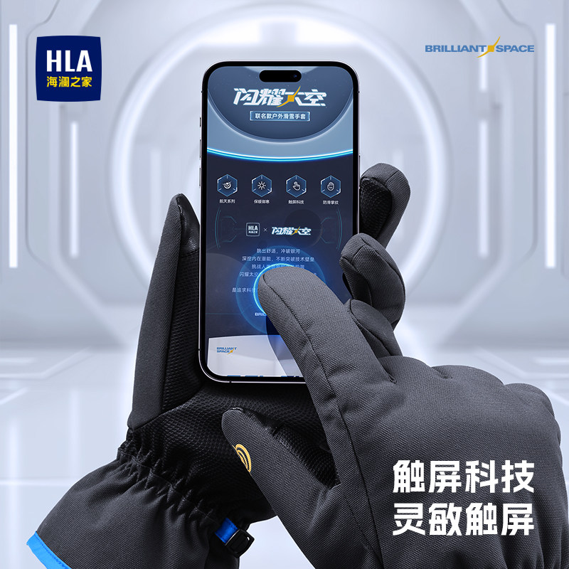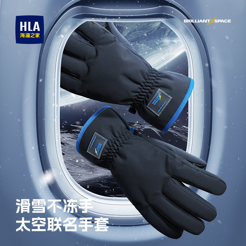 海澜之家滑雪手套男士2025新款棉手套户外骑行防滑防风触屏加绒潮