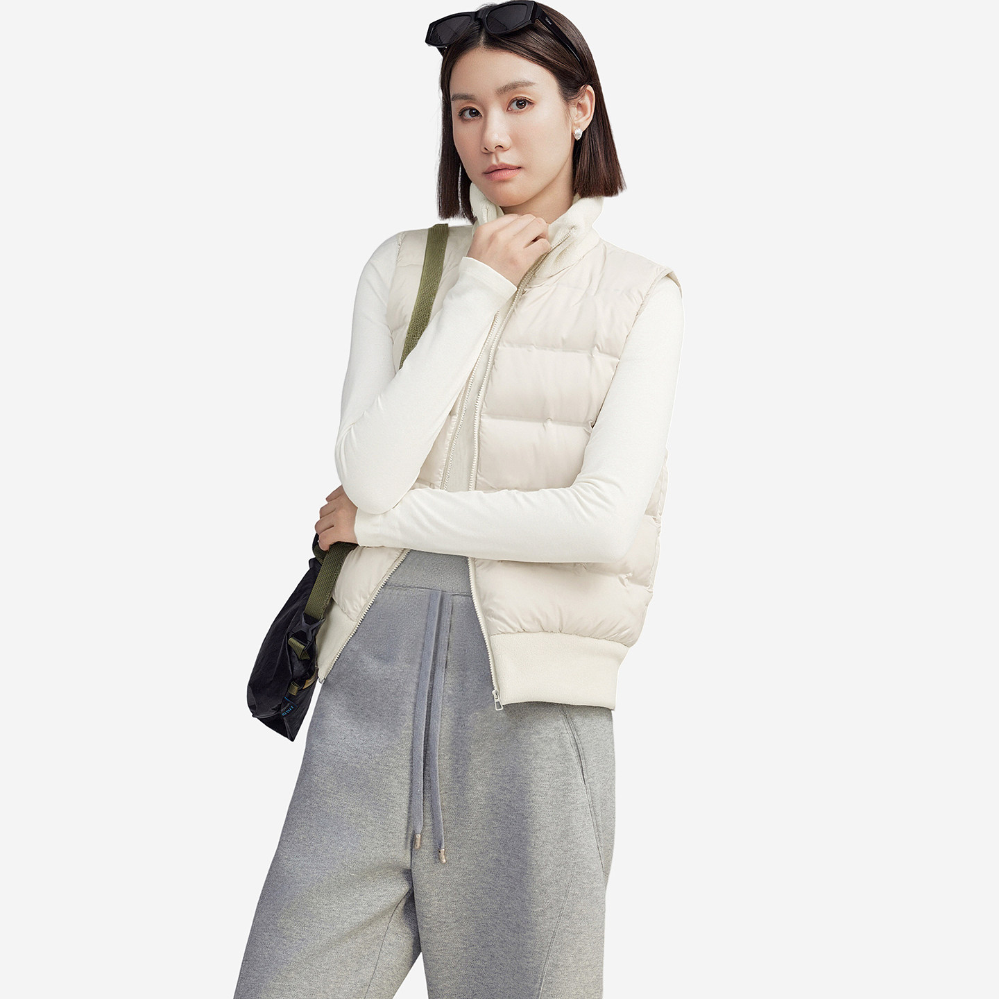 鸭鸭轻薄羽绒服马甲女V领反季基础修身背心休闲蓬松鸭绒马夹外套X