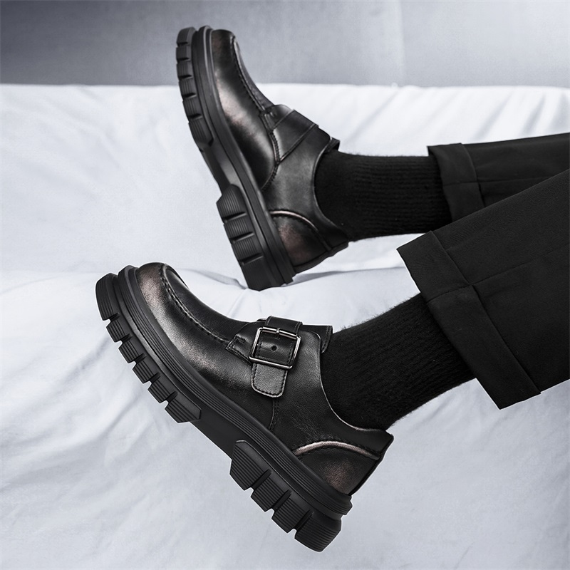 【小牛皮】青润chioryn袋鼠鞋男黑色真皮增高厚底休闲通勤风皮鞋