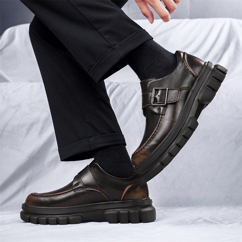 MRA德比鞋男款圆头大头鞋黑色工装鞋通勤马丁靴厚底增高休闲皮鞋
