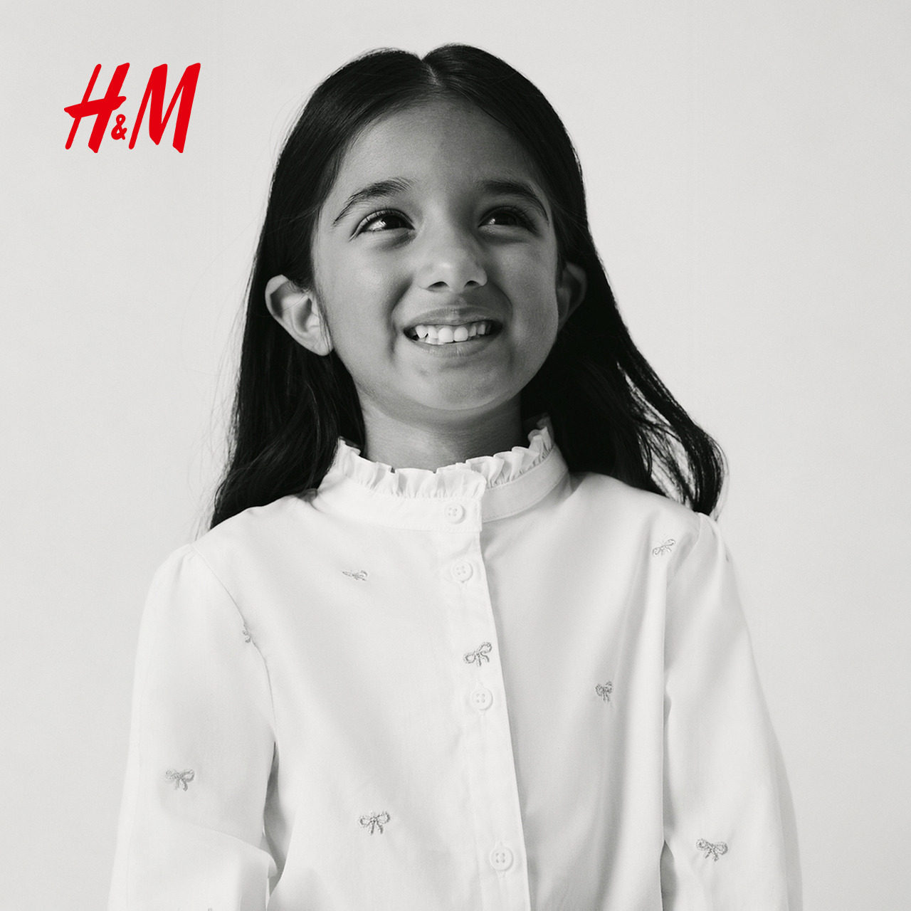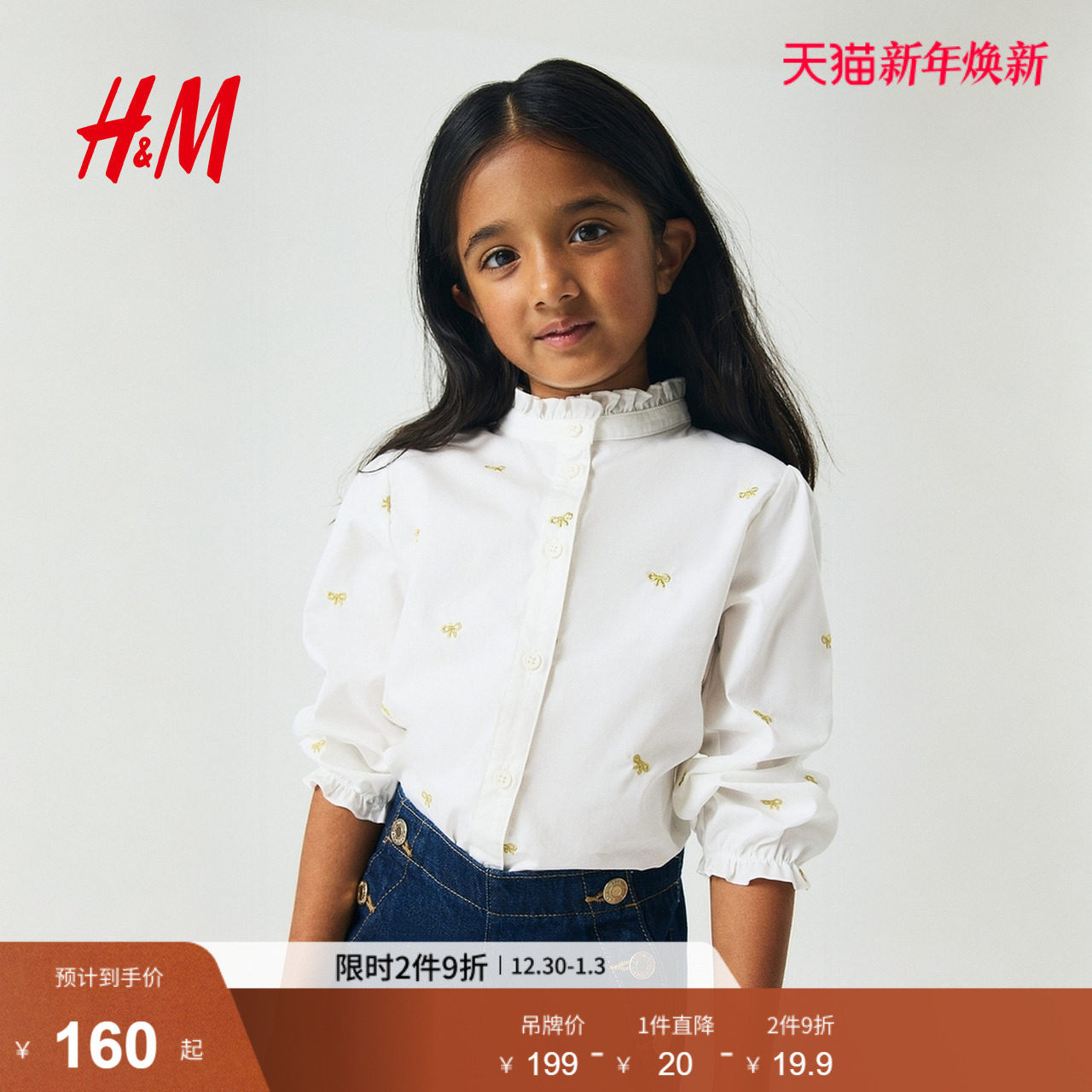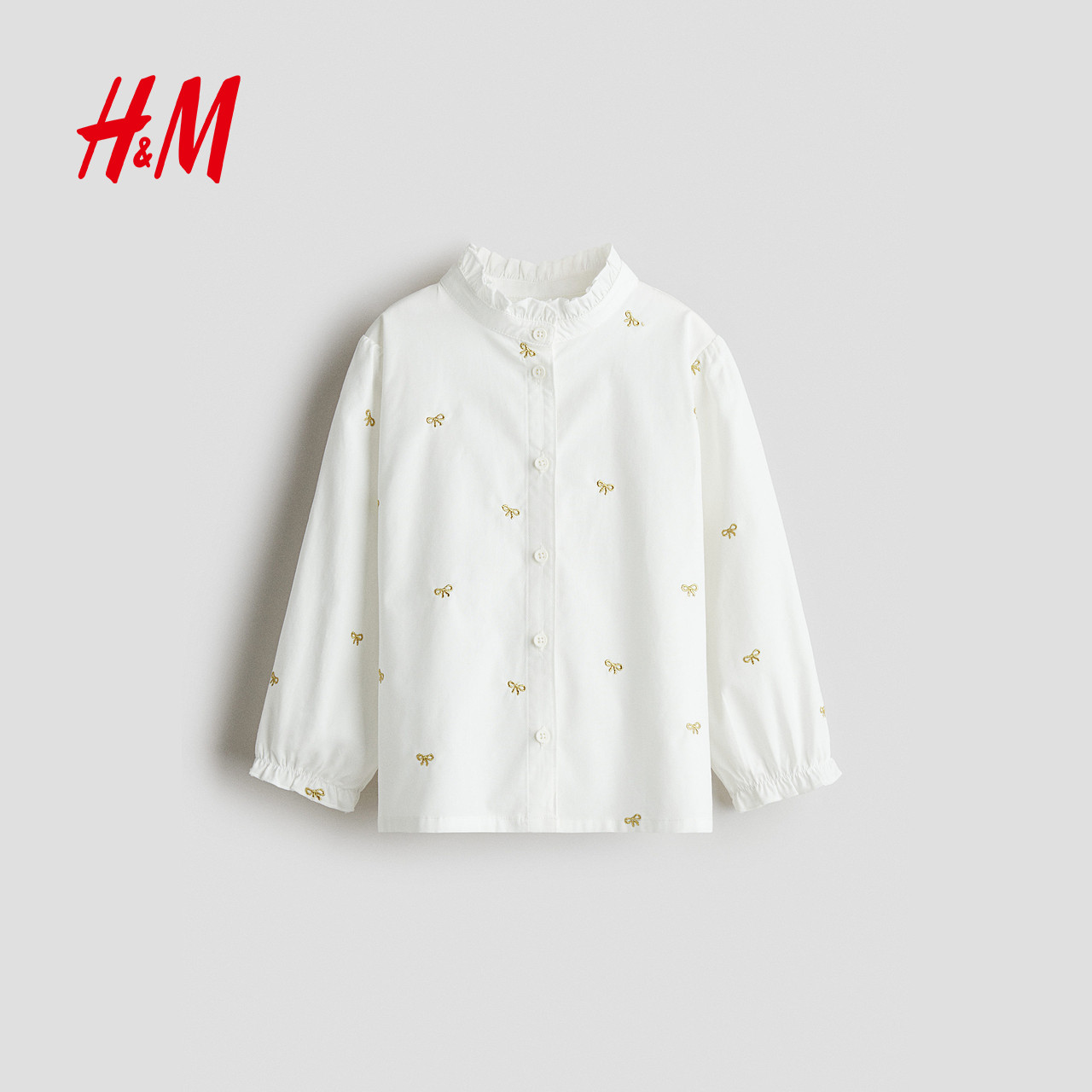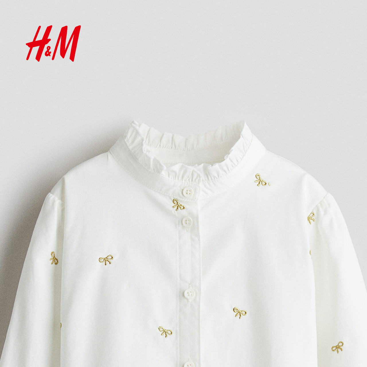 HM童装儿童女童衬衫春季长袖礼服演出服棉府绸衬衣上衣1307498