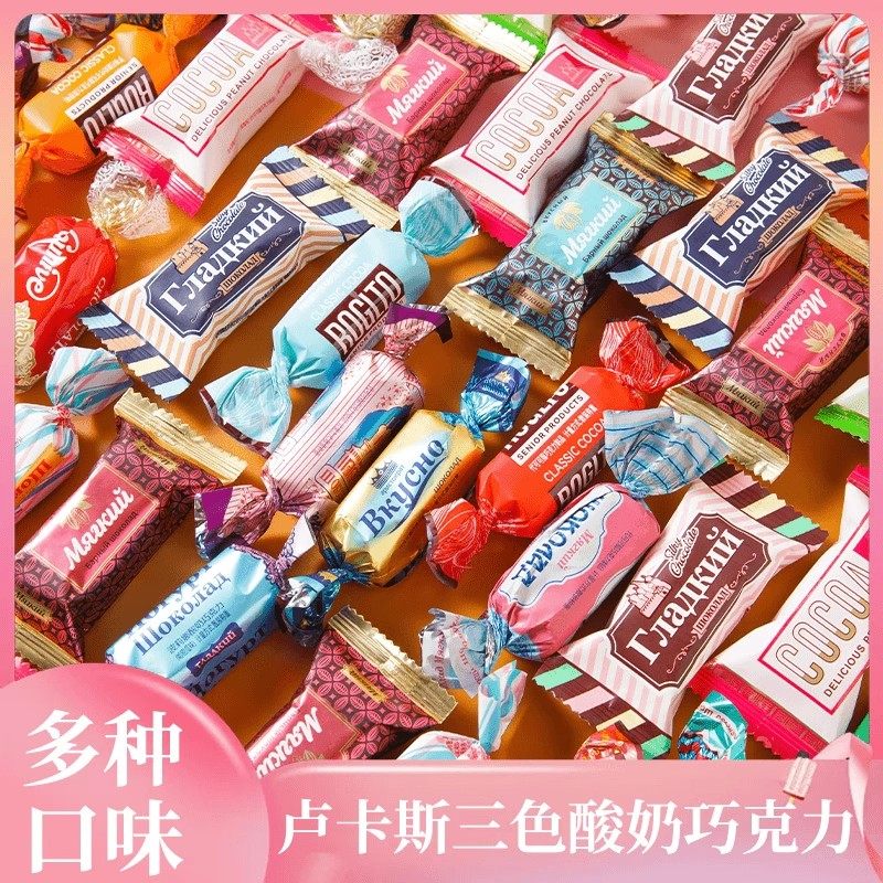 俄罗斯风味卢卡斯酸奶巧克力三色夹心混合味圣诞糖果(代可可脂)