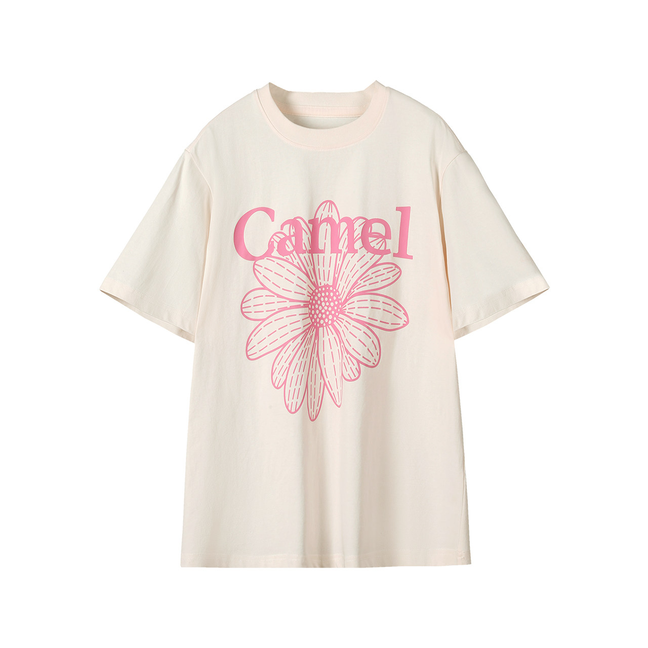 骆驼冰皮T神小雏菊T恤短袖2026夏季新款棉感宽松休闲韩系圆领上衣