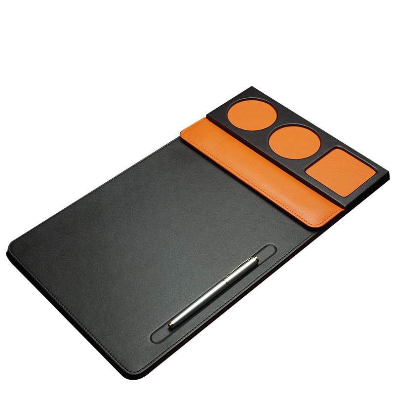 U皮质会议夹 写字垫板夹会议记录文件夹定制磁性桌垫茶杯托装