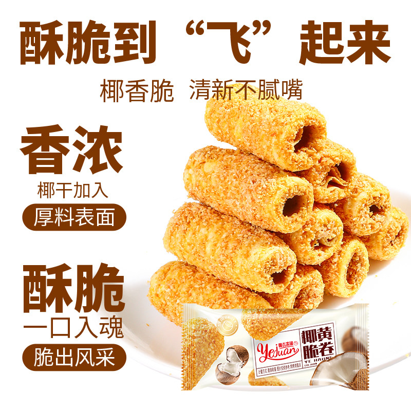 椰黄酥酥椰蓉酥薄脆纯手工夹心蛋卷网红爆款宿舍休闲小零食一整箱