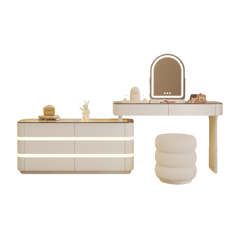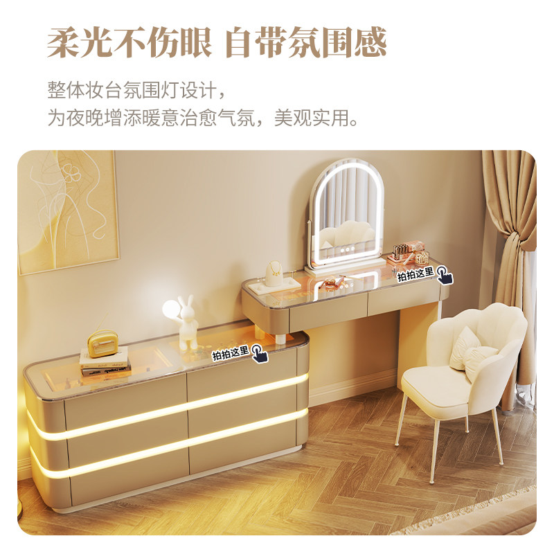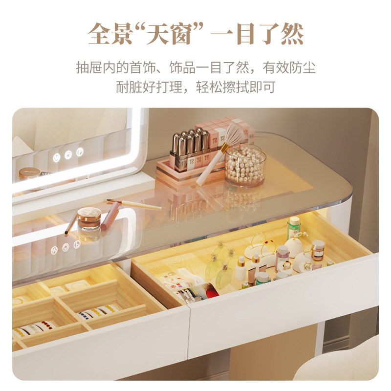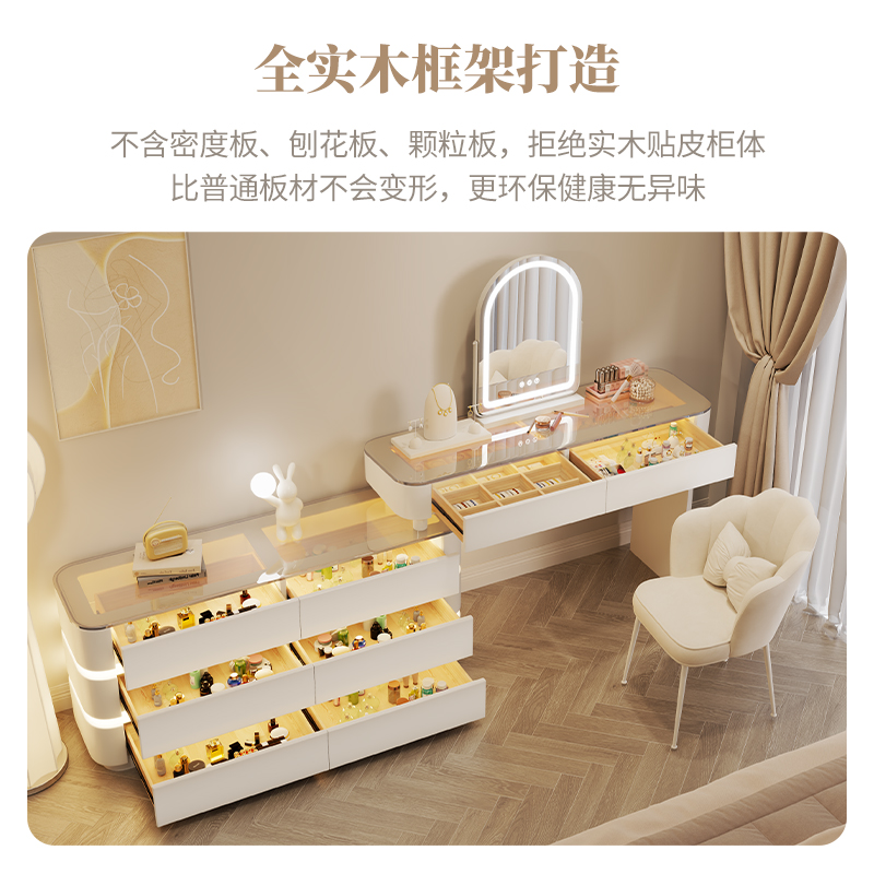 长款梳妆台玻璃化妆桌轻奢高级卧室大容量化妆台一体简约现代斗柜