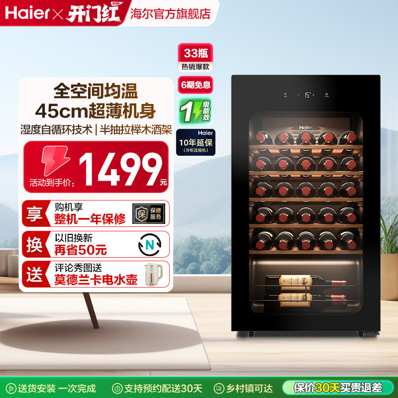 【新品】海尔33瓶风冷超薄家用红酒柜冷藏均温静音酒窖级冰吧