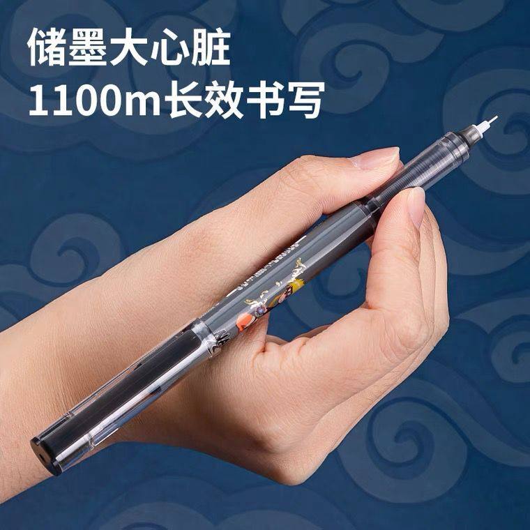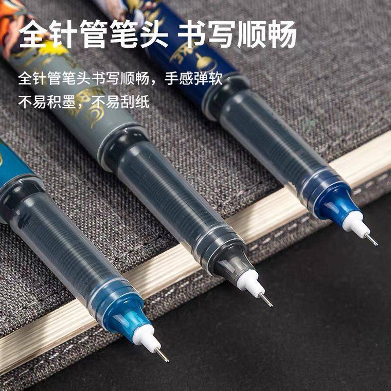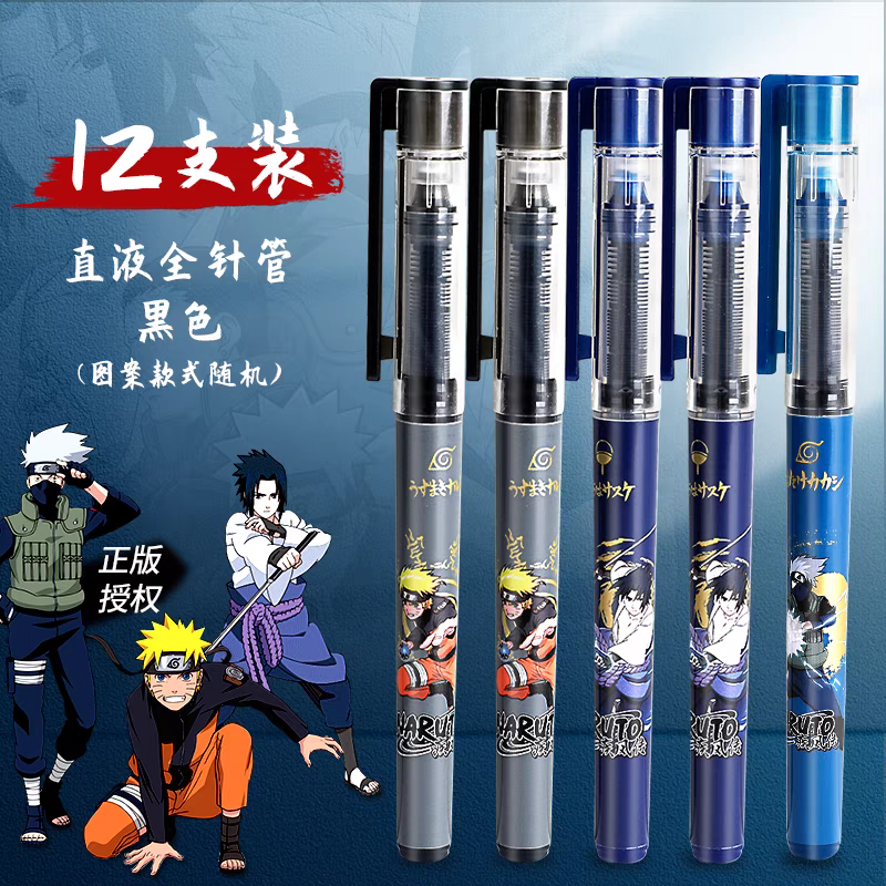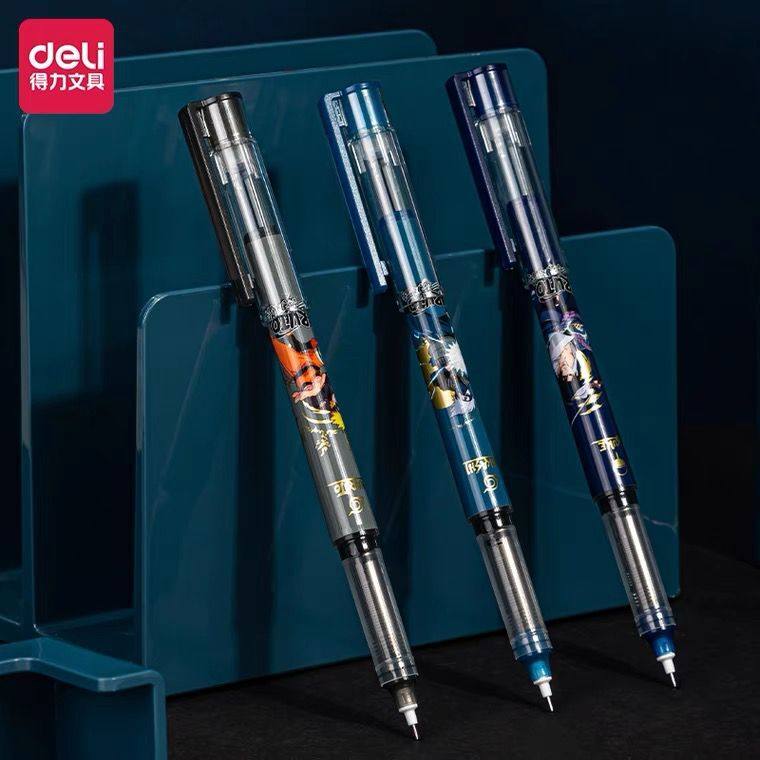 得力火影忍者直液式走珠中性0.5mm全针管黑色签字水笔高颜值大容量滚珠学生专用可爱限定考试巨能写