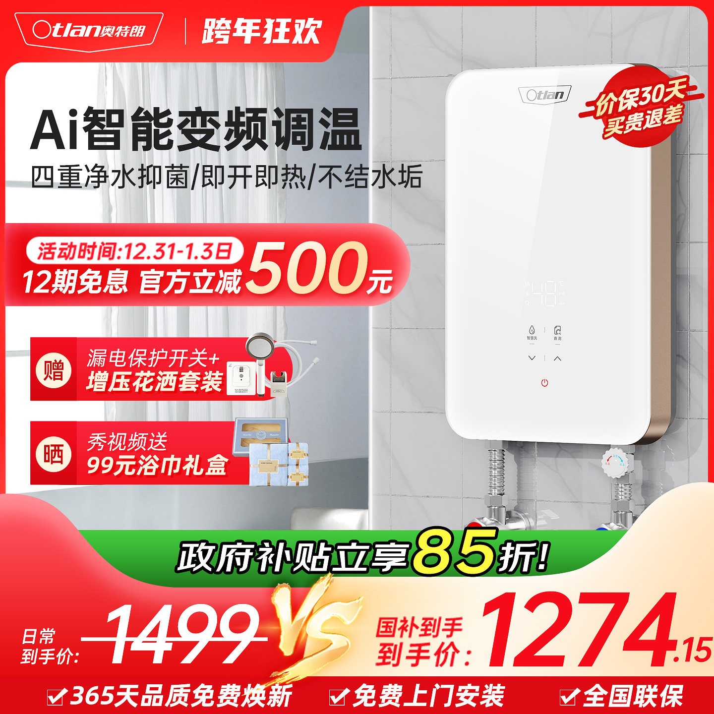 Otlan/奥特朗F16H即热式电热水器家用小型恒温租房速热洗澡淋浴器
