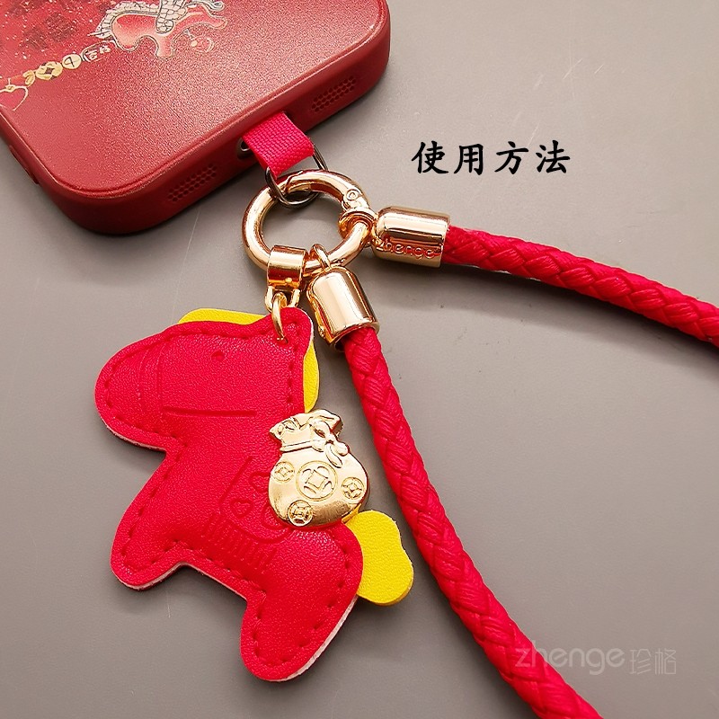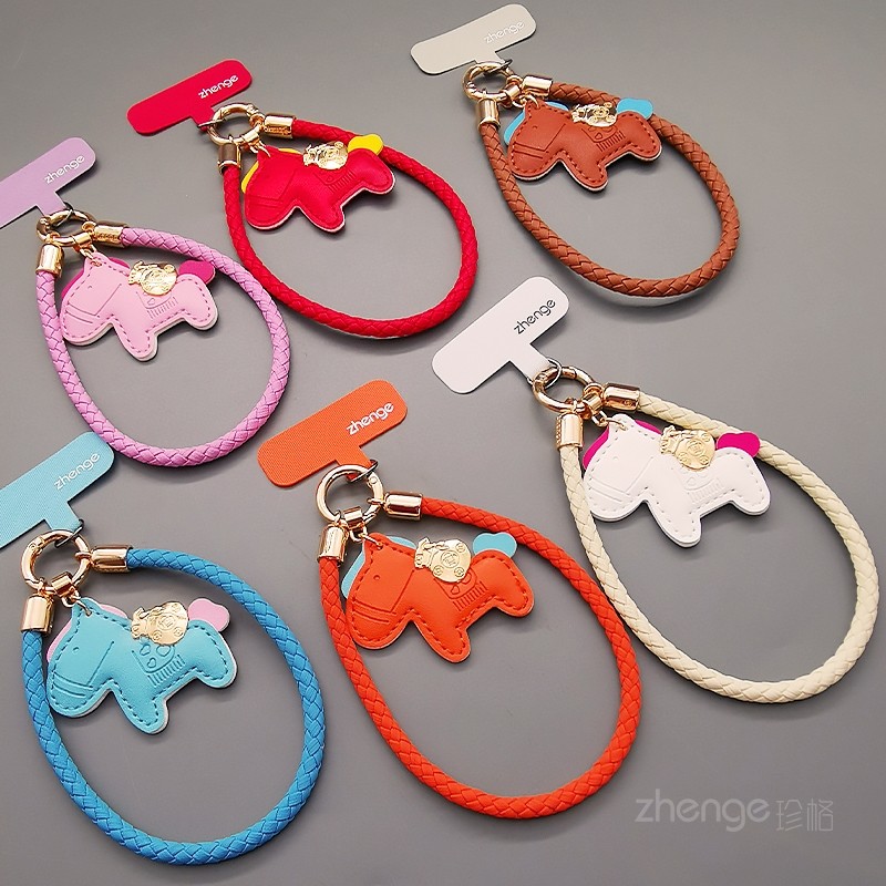 2026时尚新款皮质编织手机挂绳招财小马吊坠挂件绳卡通可爱饰品户外旅游出行防丢摔电话套壳女士手腕绳子通用