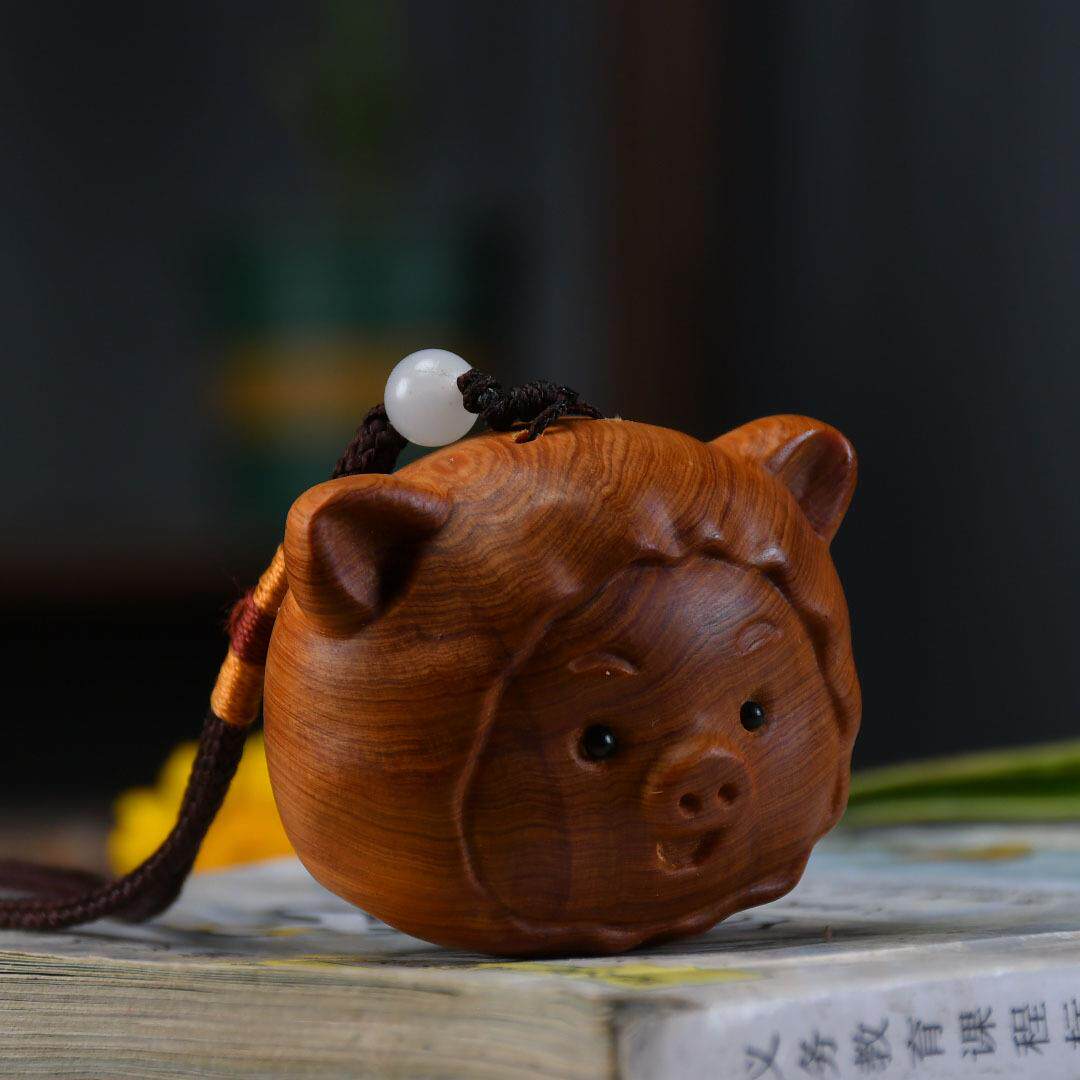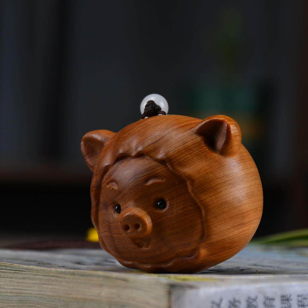 源头崖柏木雕摆件可爱猪手把件茶虫家居男士随身文玩动物生肖