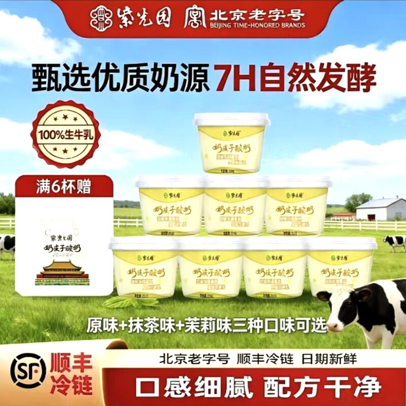 新鲜老北京紫光园奶皮子酸奶 网红特产食品老式原味茉莉抹茶酸奶