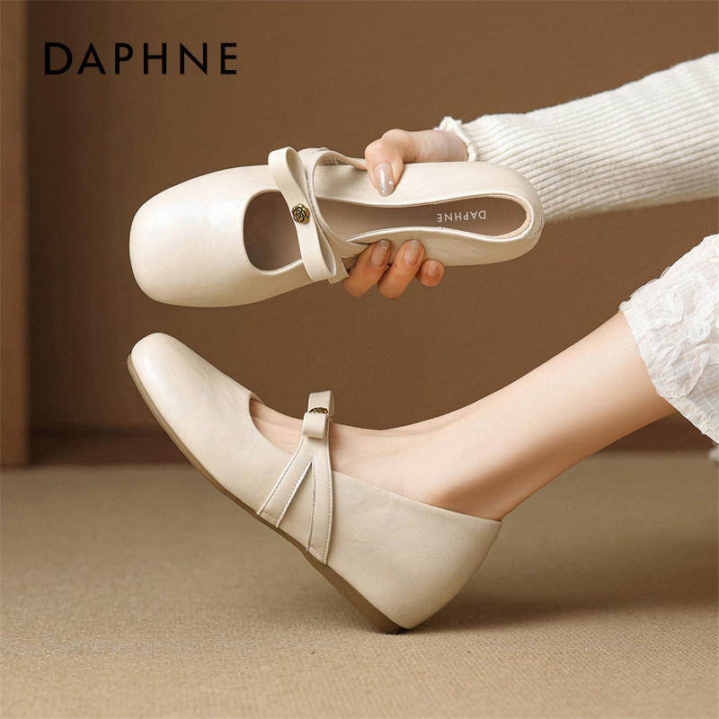 达芙妮法式玛丽珍鞋女款2026春季新款内增高小皮鞋山茶花米色单鞋
