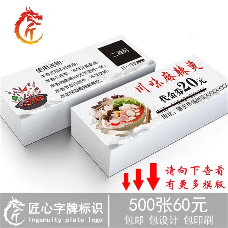 麻辣烫代金券定制 美食餐饮u现金牴用券 制作优惠卷印刷设计牴扣