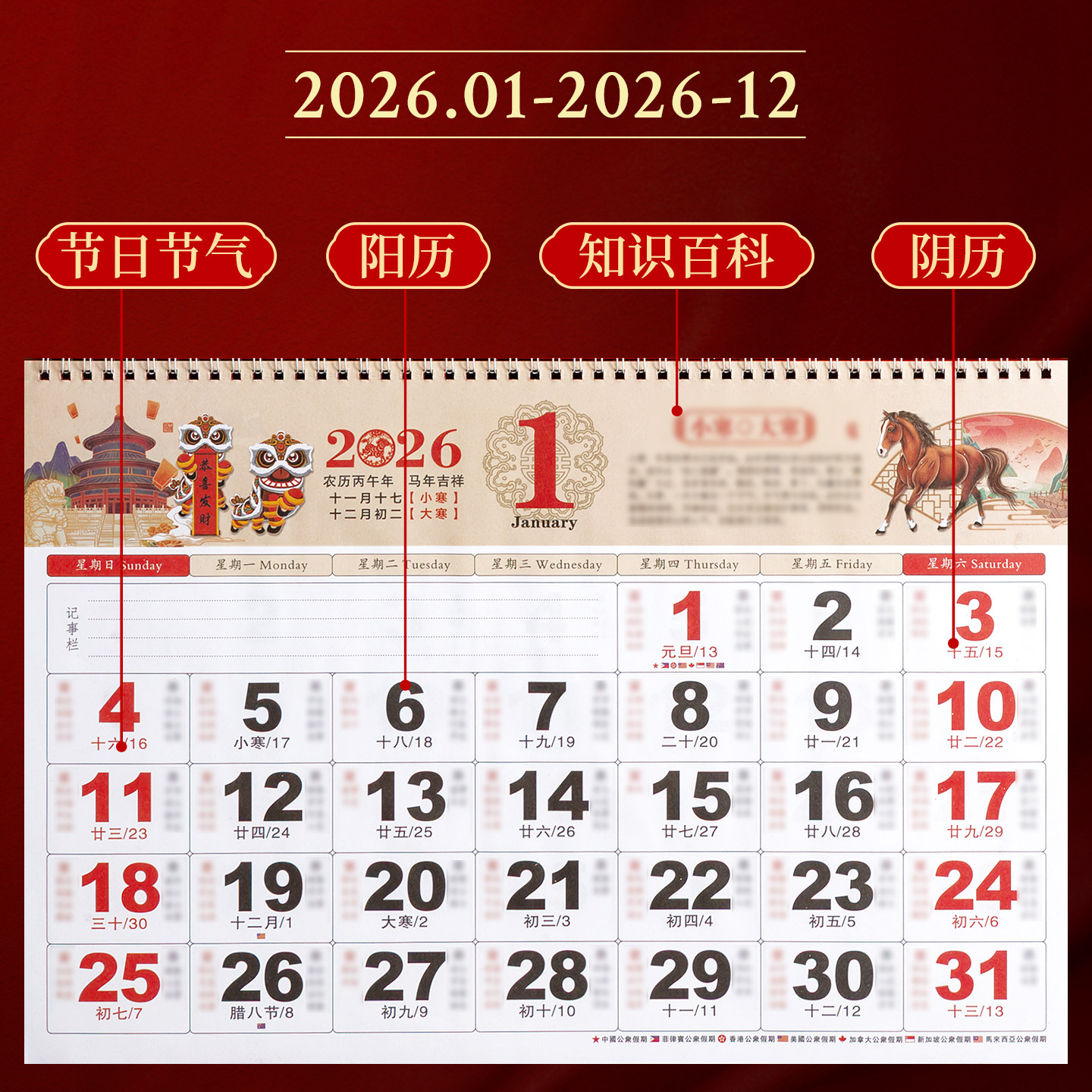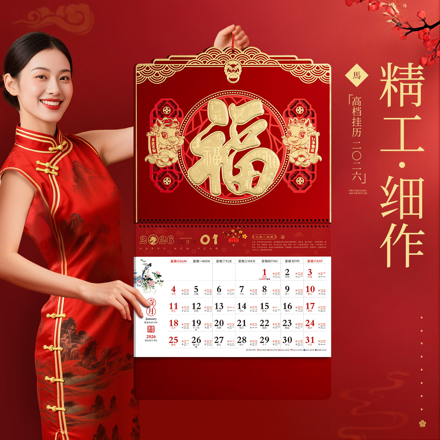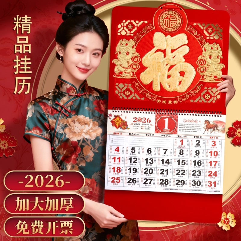 精品2026年挂历新款日历马年福字加大加厚高档大号月历客厅挂墙装饰中国风家用挂墙新年氛围喜庆年历送礼必备