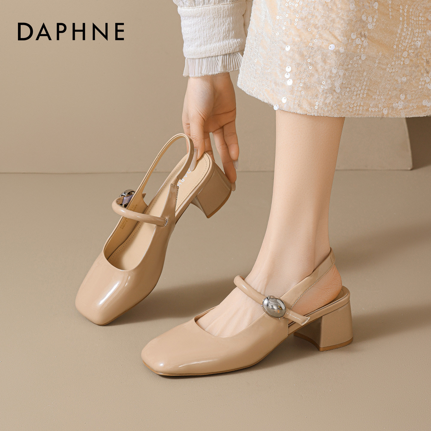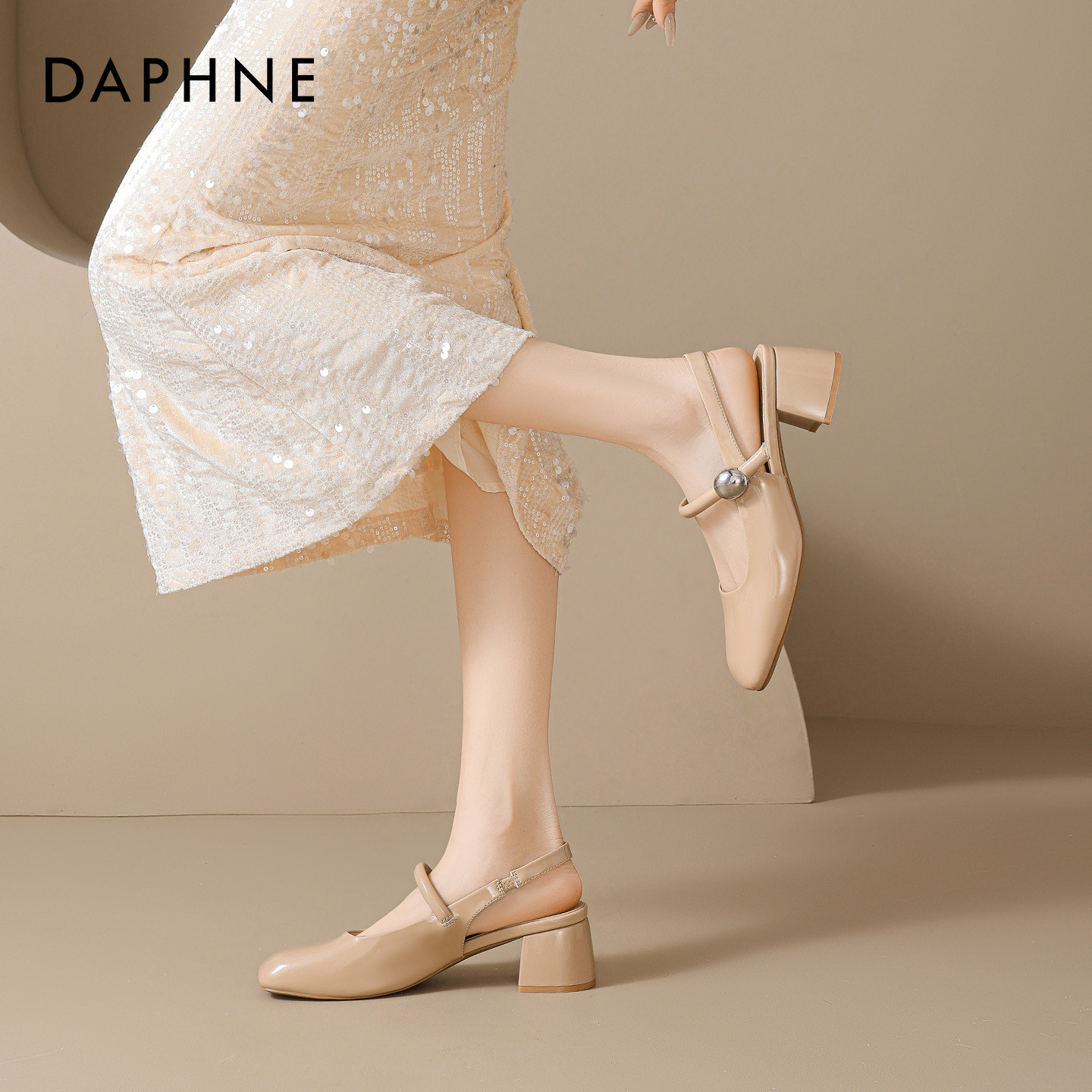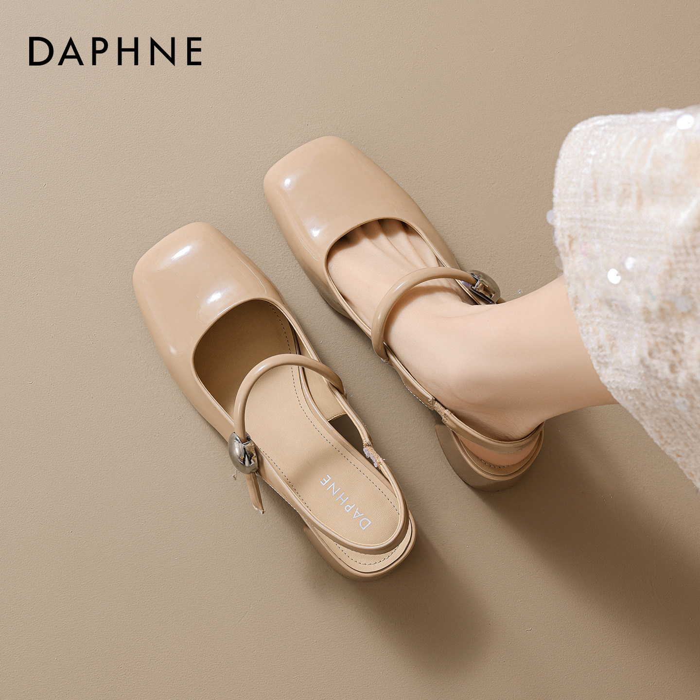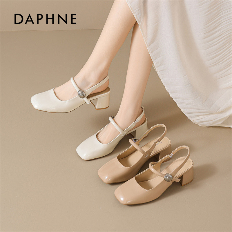 达芙妮包头凉鞋女2026新款春季方头粗跟软底不累脚浅口玛丽珍单鞋