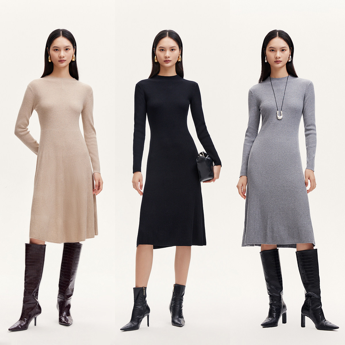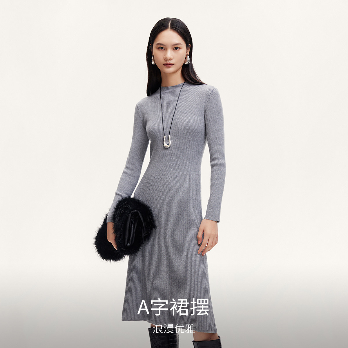 Vero Moda连衣裙秋冬半高领收腰修身显瘦针织长裙气质324346024