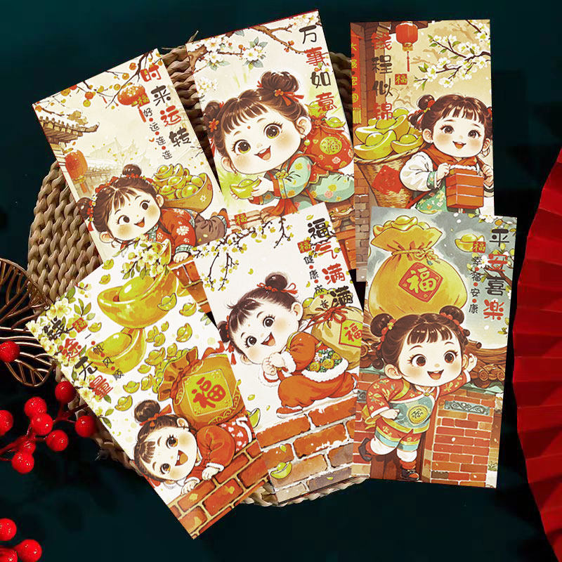 国潮萌娃年画红包袋2026马年新年复古财神红包国潮创意个性利是封