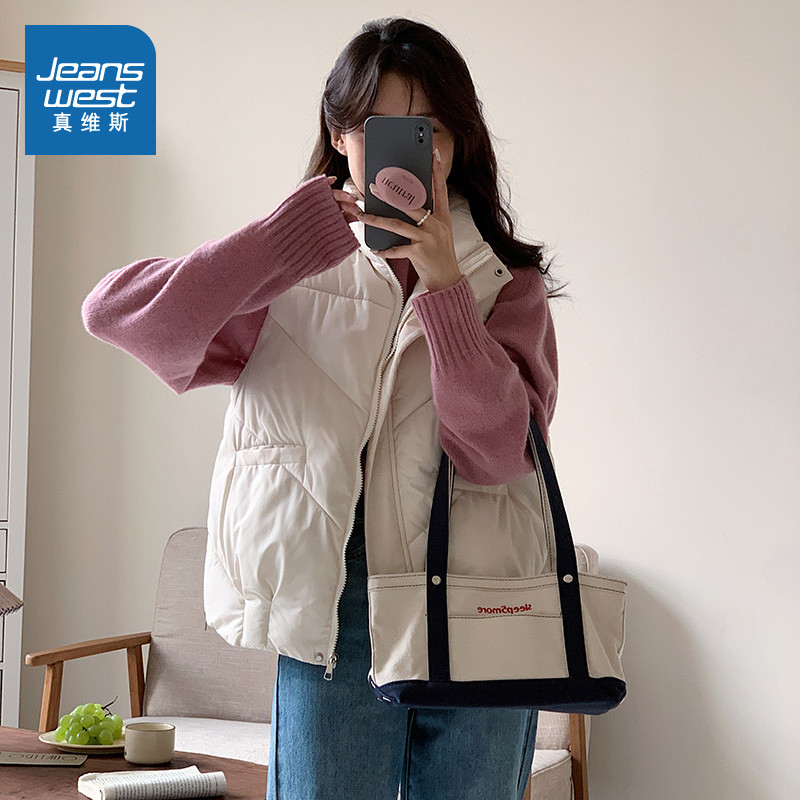 KY真维斯青少年女装秋冬季款时尚百搭间棉背心立领马甲外套