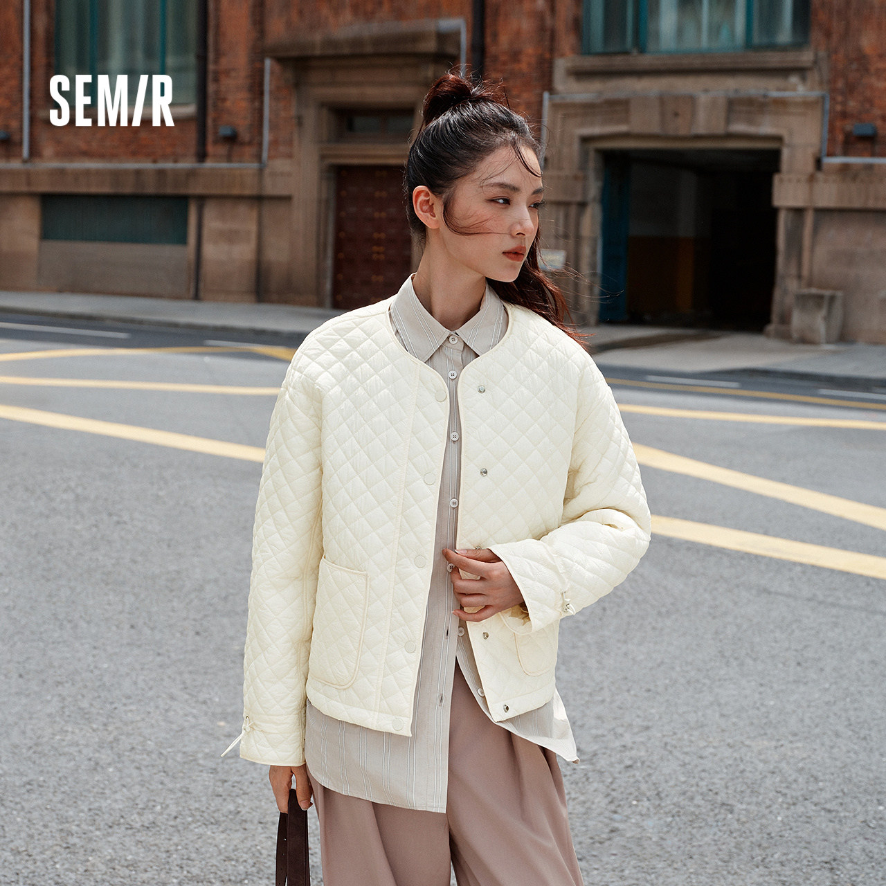 半抽绳袖口凹出花边袖 经典菱格 松弛感微皱