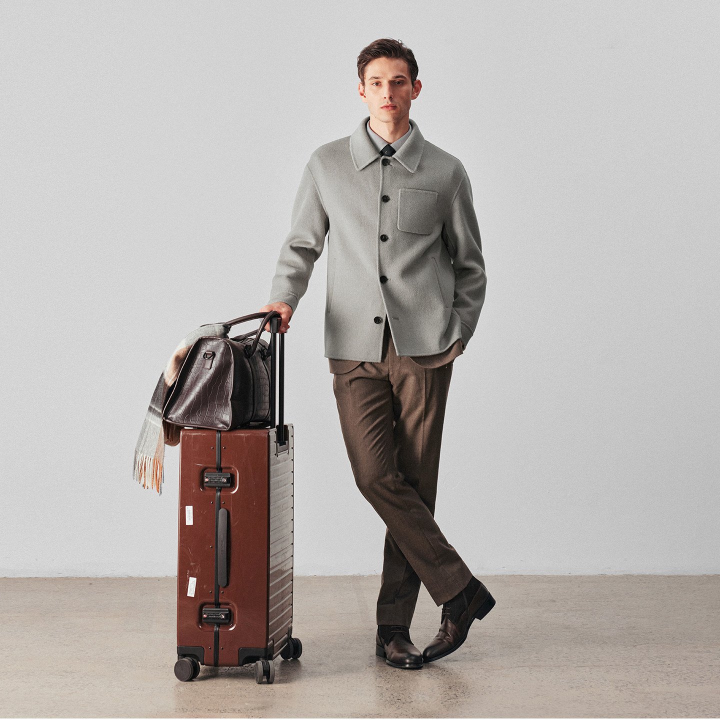 【100%绵羊毛】报喜鸟柴斯特斜纹中长款男大衣堑壕双面呢短款外套