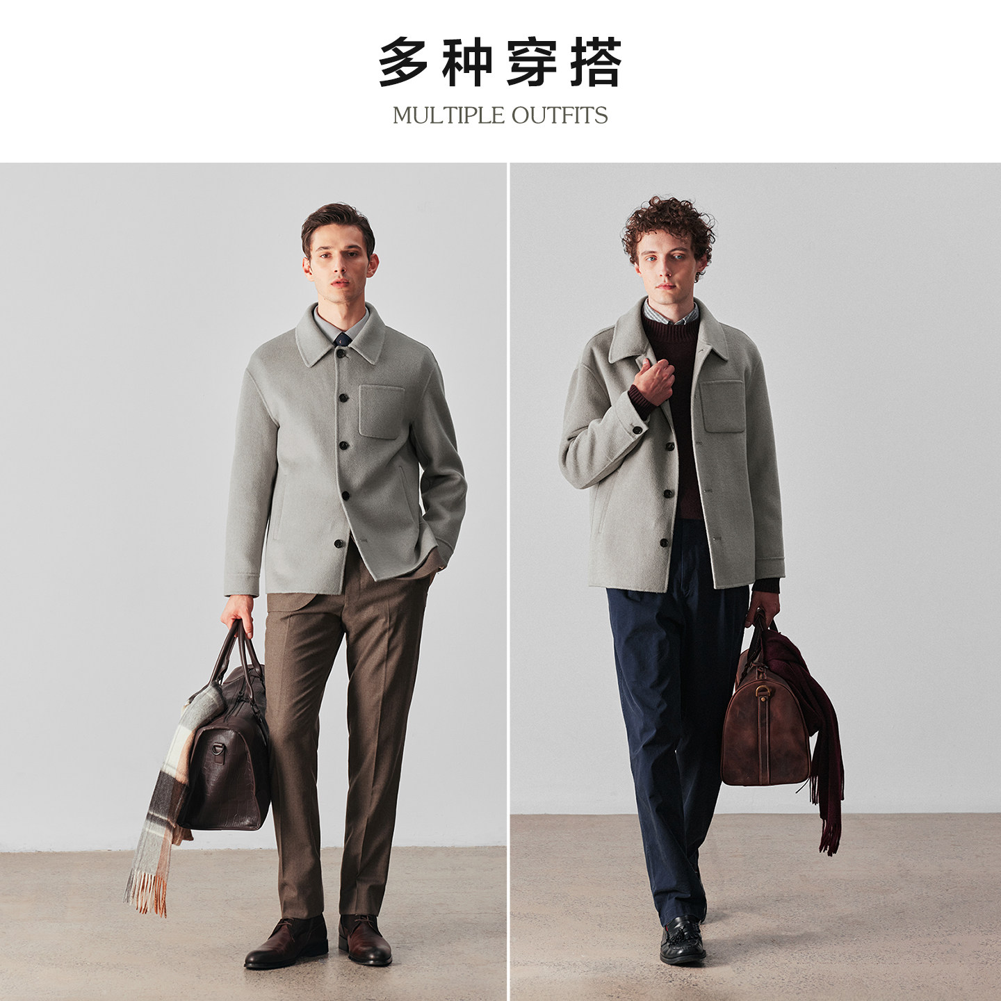 柏品纯羊毛双面呢短款大衣男士2025冬季新款翻领商务休闲毛呢外套