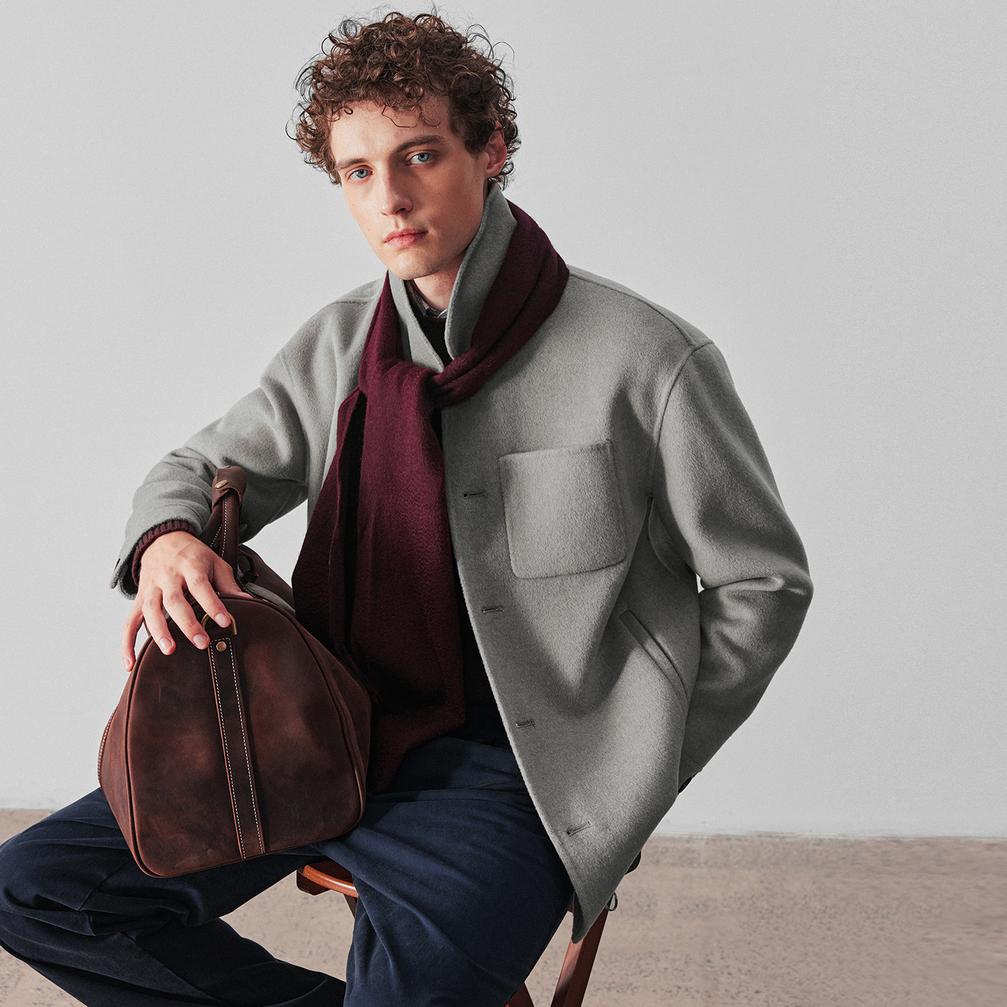 海上公路牦牛绒双面呢大衣男士秋冬季90羊毛气质长款风衣毛呢外套