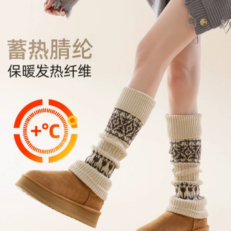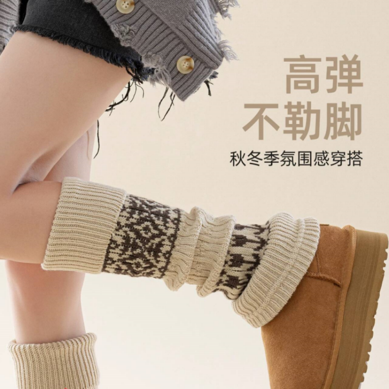 圣诞袜套女针织腿套加厚费尔岛小腿袜配勃肯鞋灰色堆堆袜春秋冬款