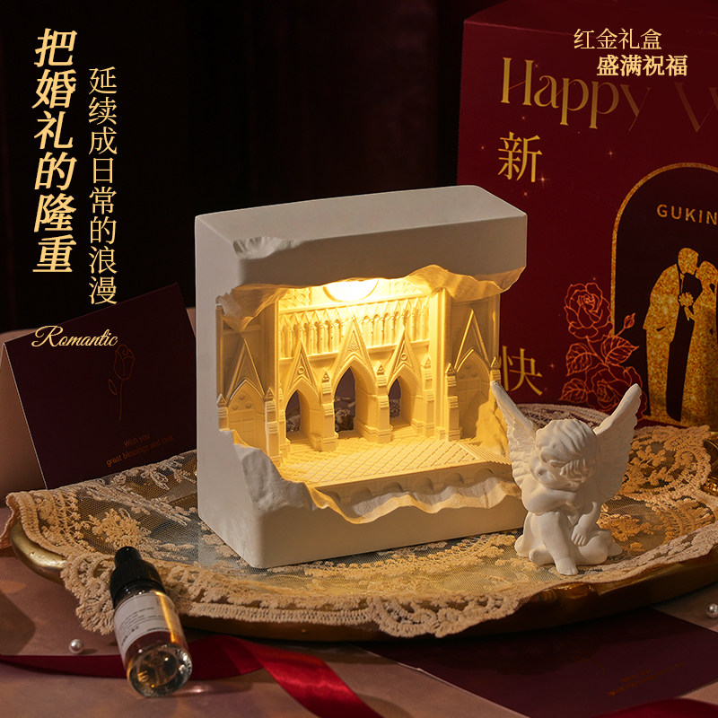 扩香石摆件车模香薰香氛新婚伴手礼无火小夜灯持久氛围栀子花新家