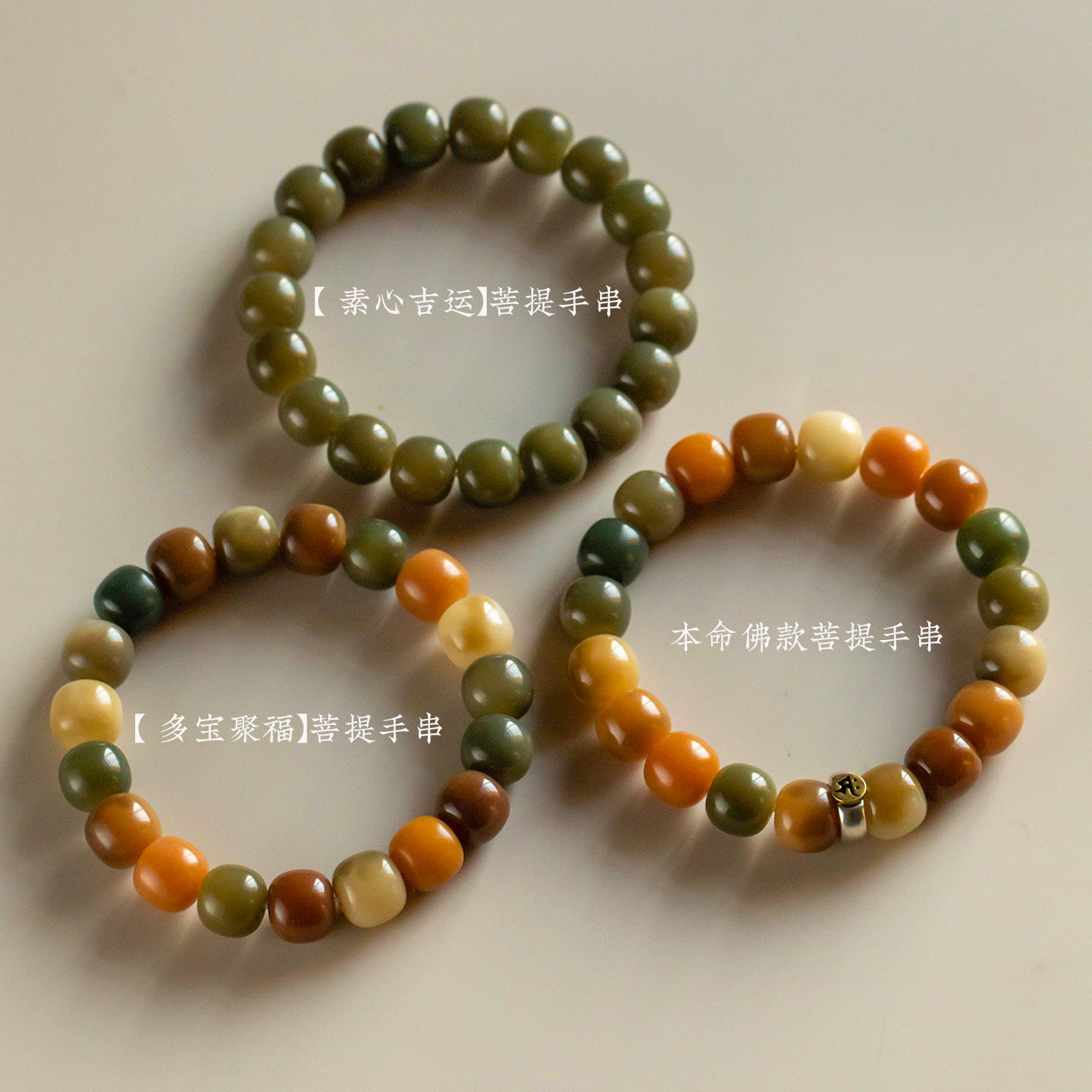 天然菩提多宝聚福手串纯银生肖本命佛马年手链素圈单圈手饰男女礼