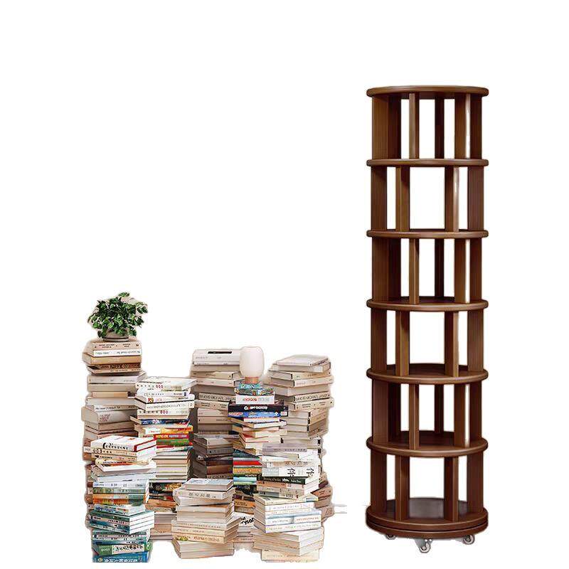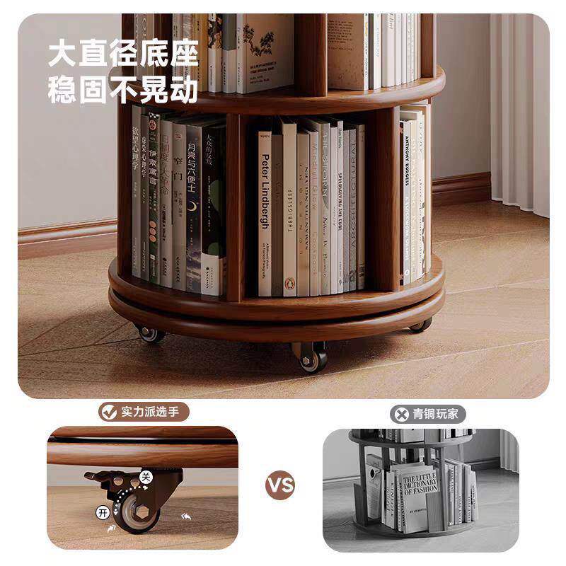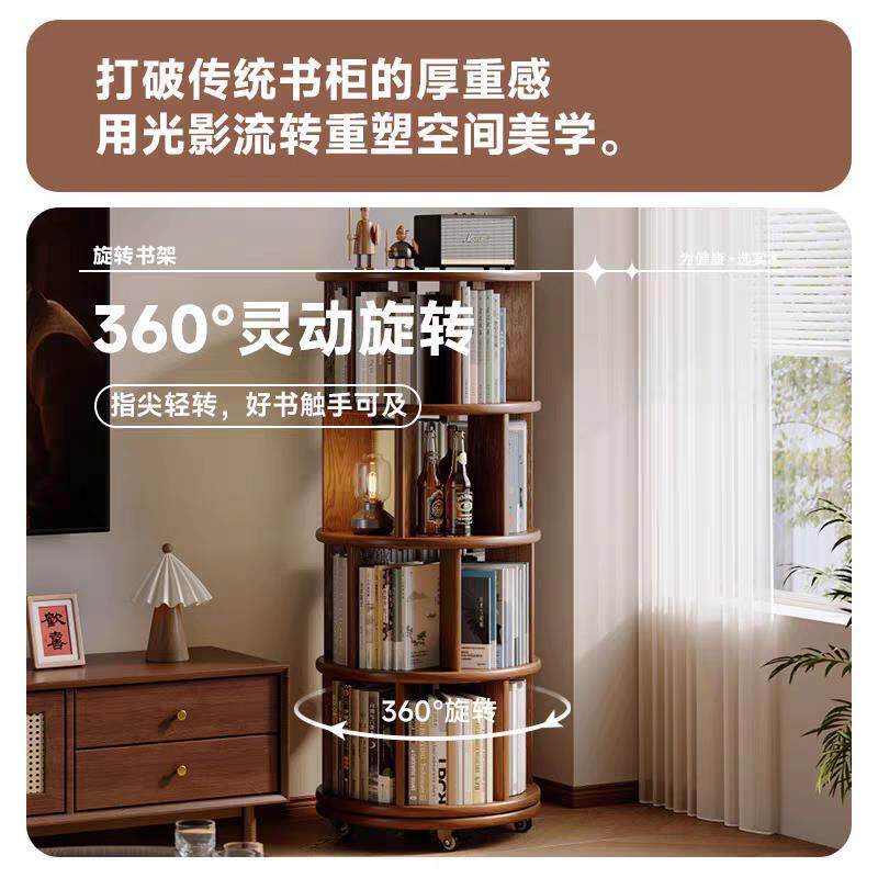 实木旋转书架客厅一体靠墙可移动书柜360度落地置物架圆形转角柜