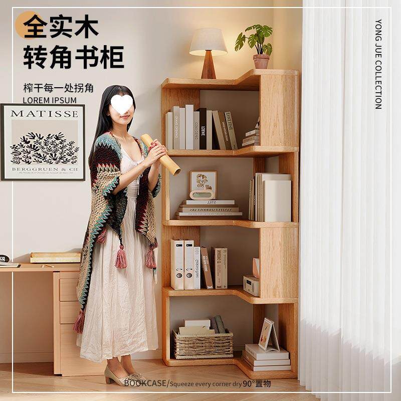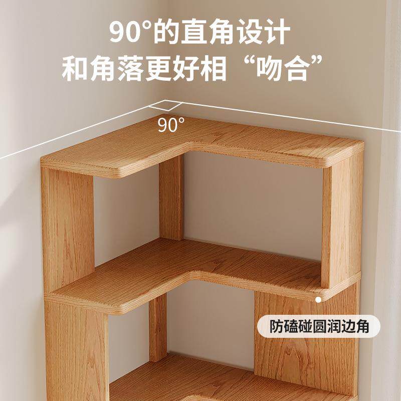 实木转角书架落地置物架客厅角柜墙角收纳架简易拐角多层储物书柜