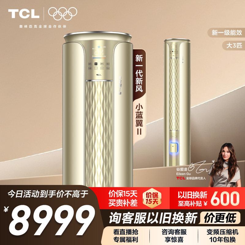 TCL 小蓝翼新风空调柜机大3匹两用新一级变频立式家用空调 72XCA
