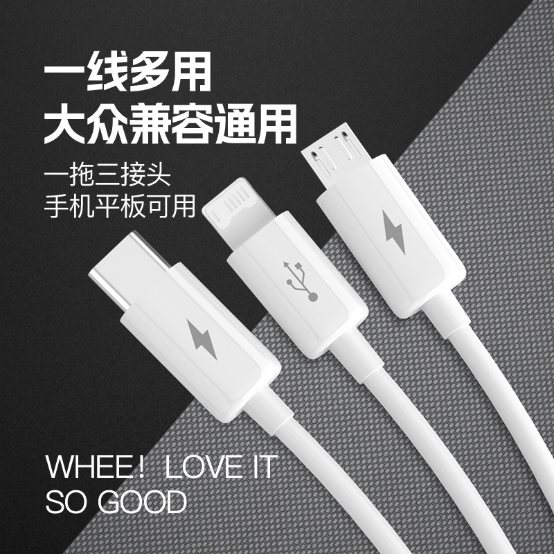会员精选品胜数据线三合一1.2m充电线适用于苹果华为小米安卓手机