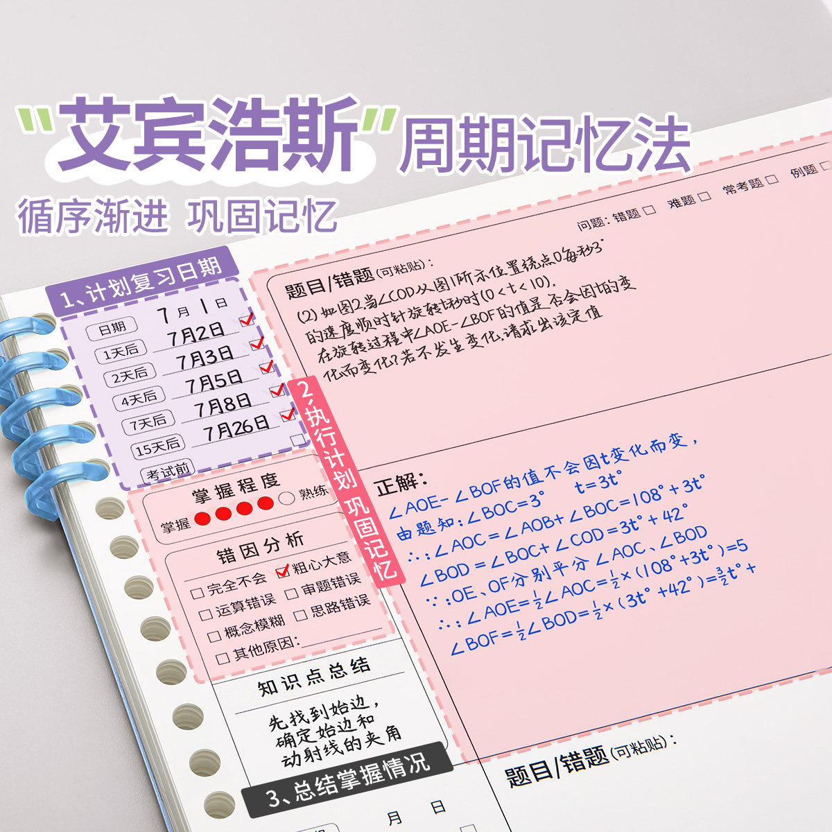 艾宾浩斯错题本初中生专用小学生活页b5高中生可拆卸纠错本数学改错本错题收集考公整理语文笔记本子加厚神器